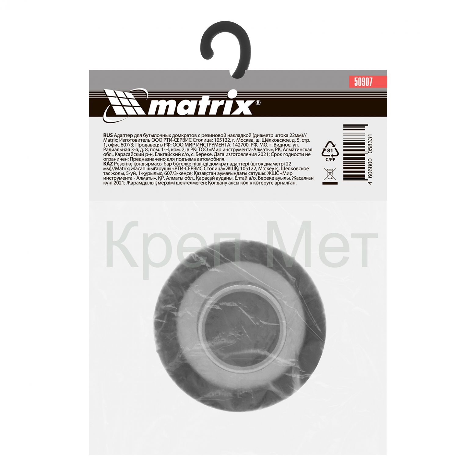 Адаптер для бутылочных домкратов Matrix 50907 с резиновой накладкой устанавливается на шток диаметром 22 мм и защищает кузов автомобиля во время его подъема. Уверенно выдерживает нагрузку в 2 тонны. Опора совместима с домкратами Sparta 50321, 50322, 50332, 50331, 50341, Matrix 50715, 50750, Stels 51160.