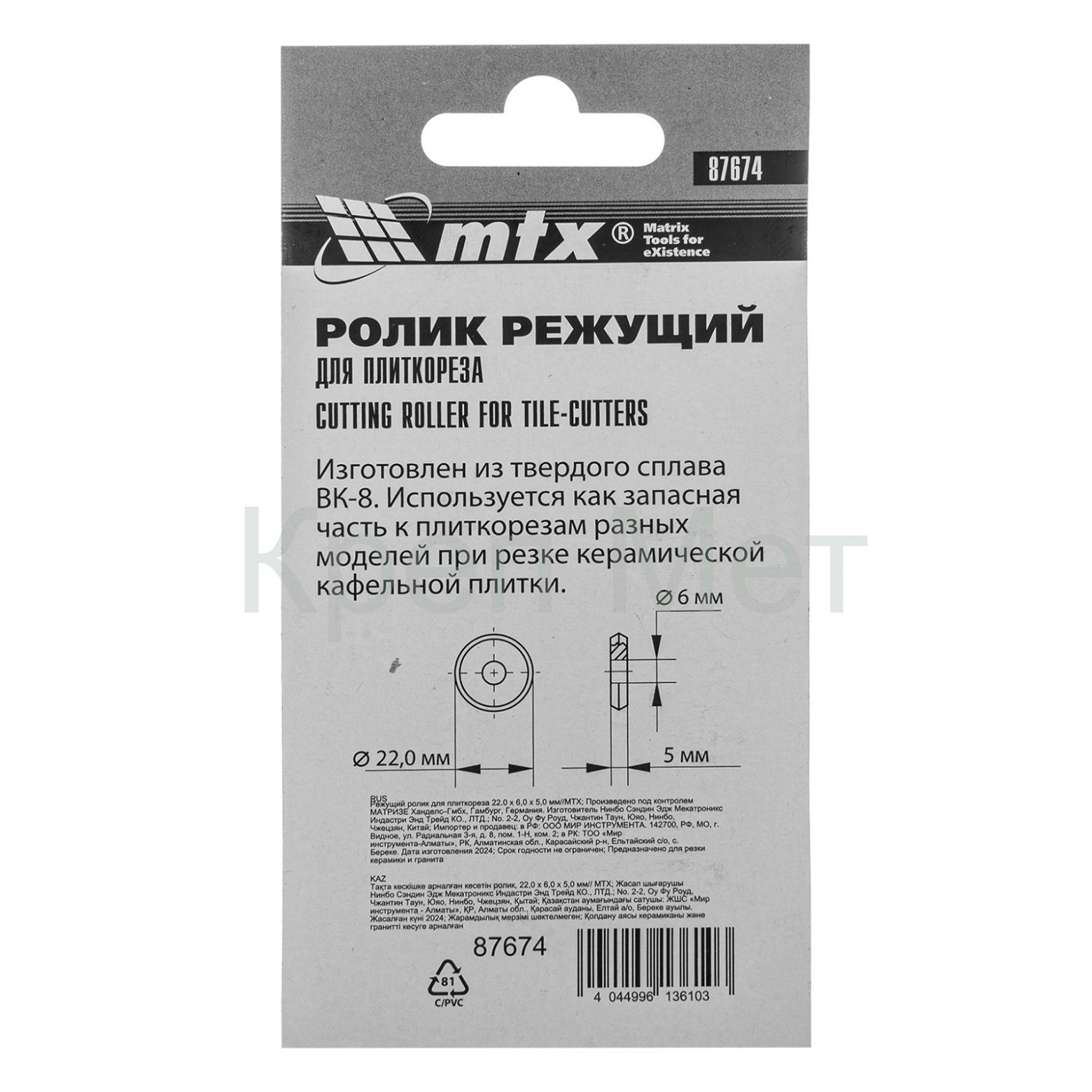 - Ролик режущий для плиткореза 22 х 6 х 5 мм МТХ