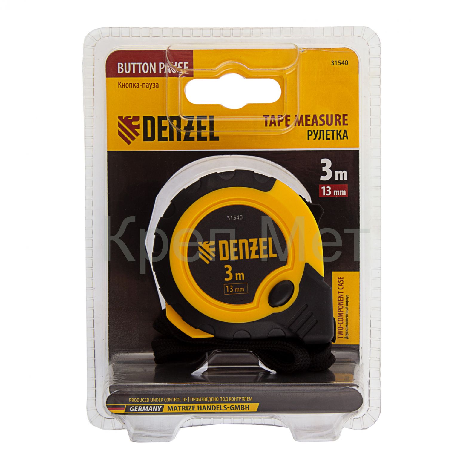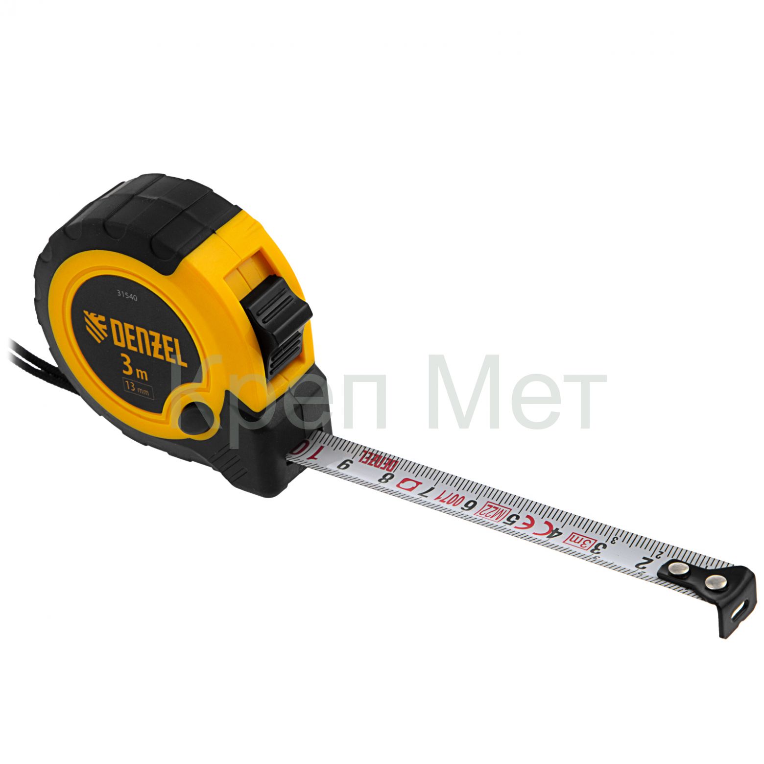 - Рулетка 3м х 13мм, двухкомп. корпус, кнопка-пауза Denzel