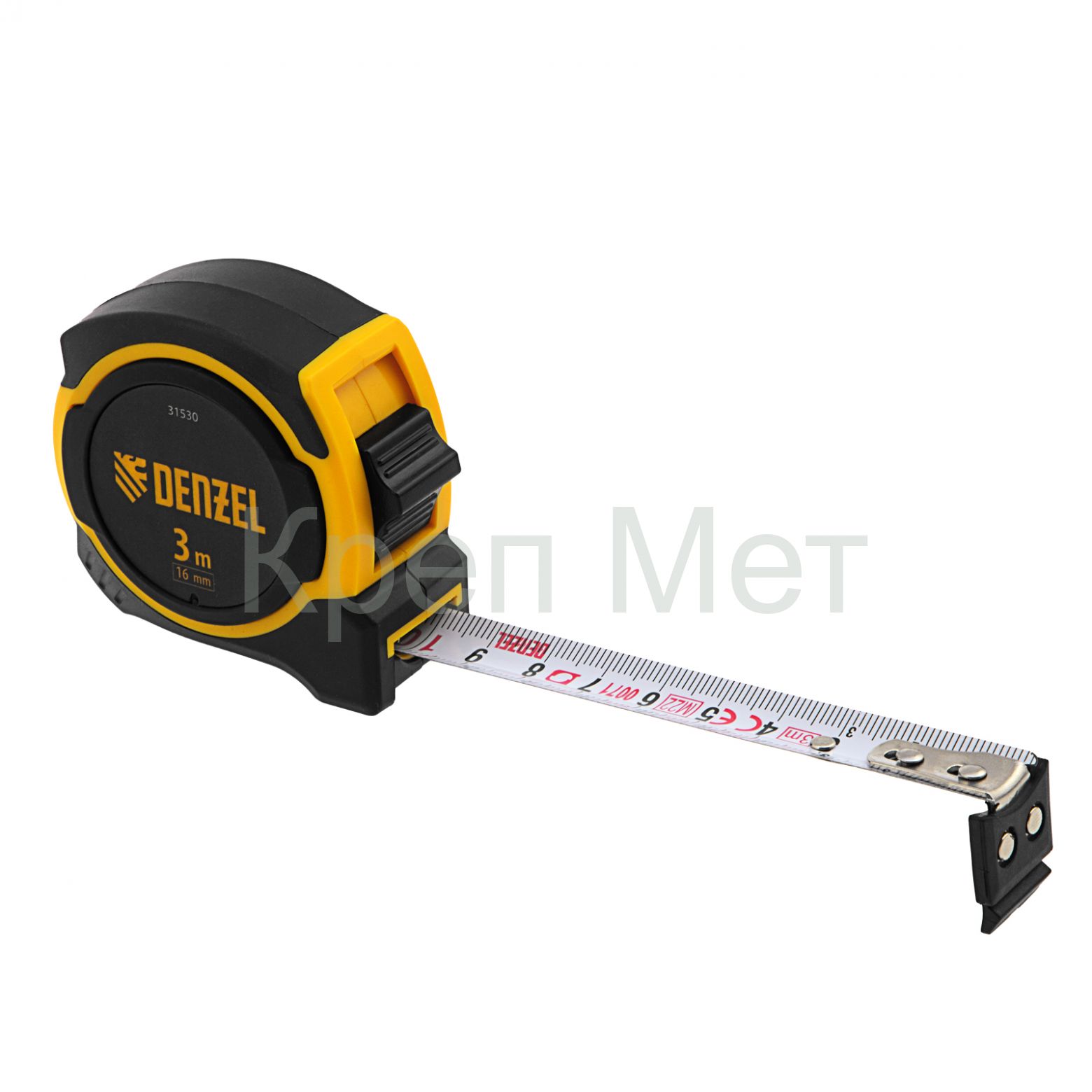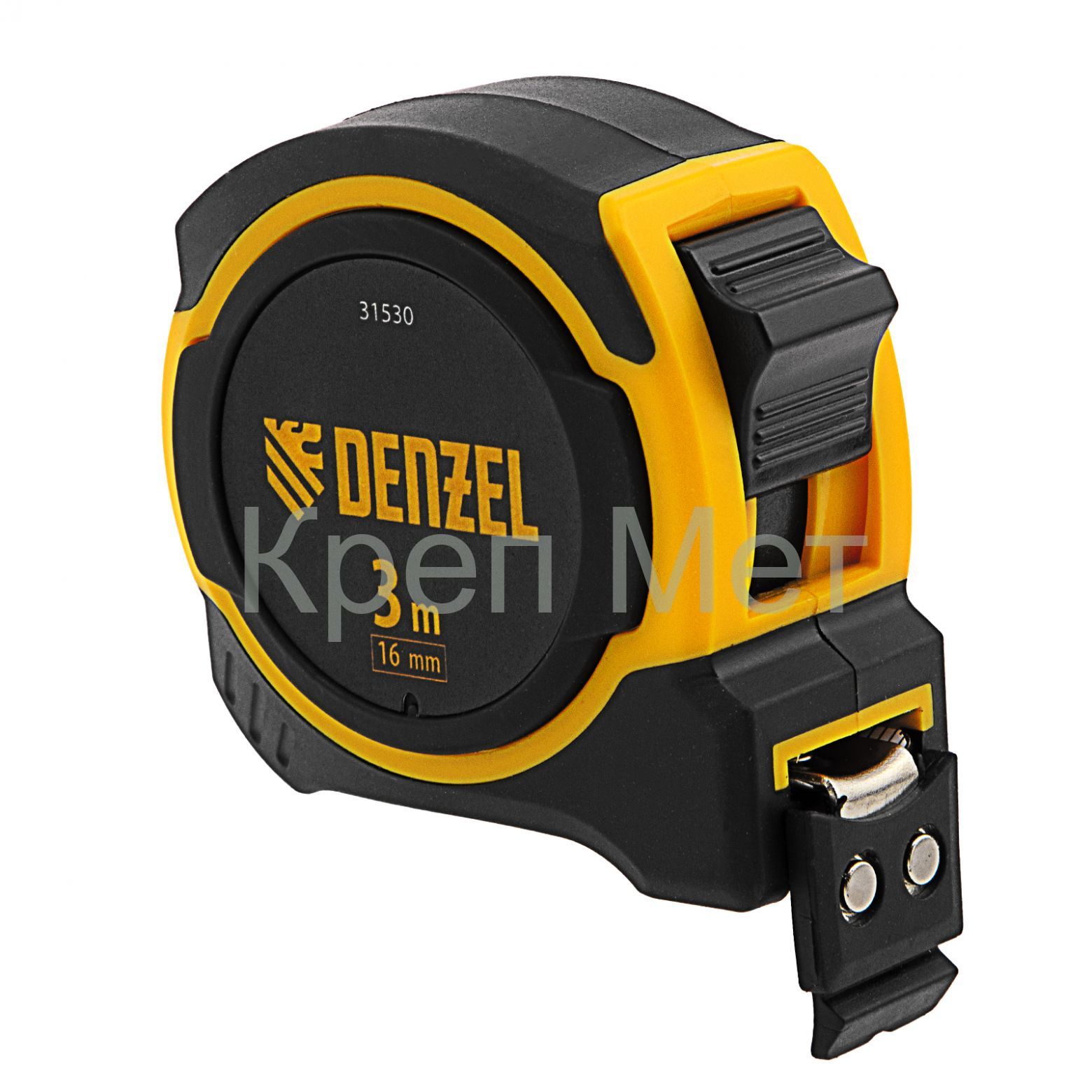 - Рулетка 3м х 16мм, двухкомп. корпус, магнитный обрезиненный зацеп Denzel