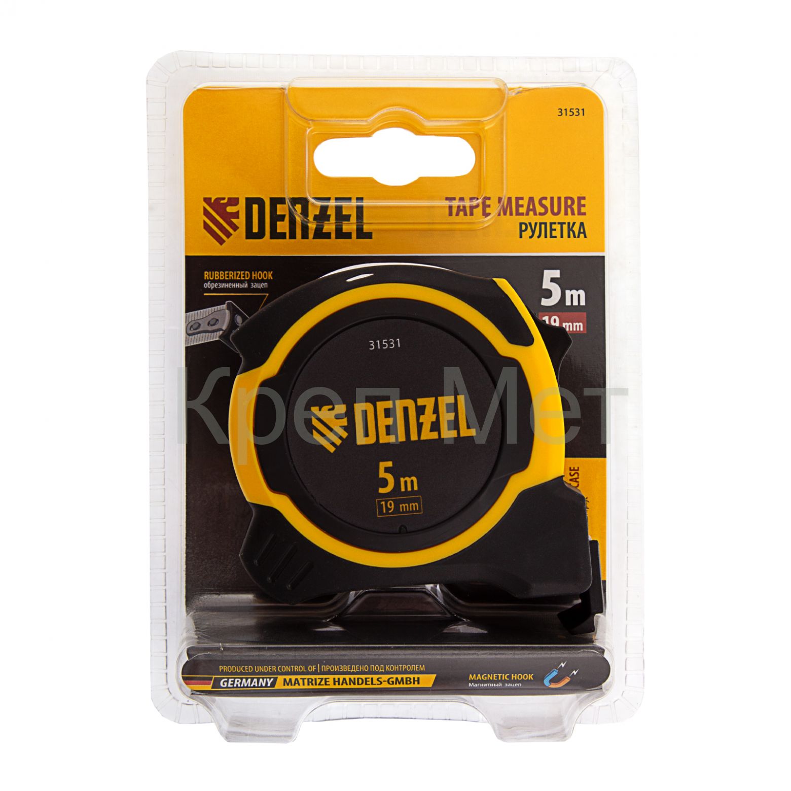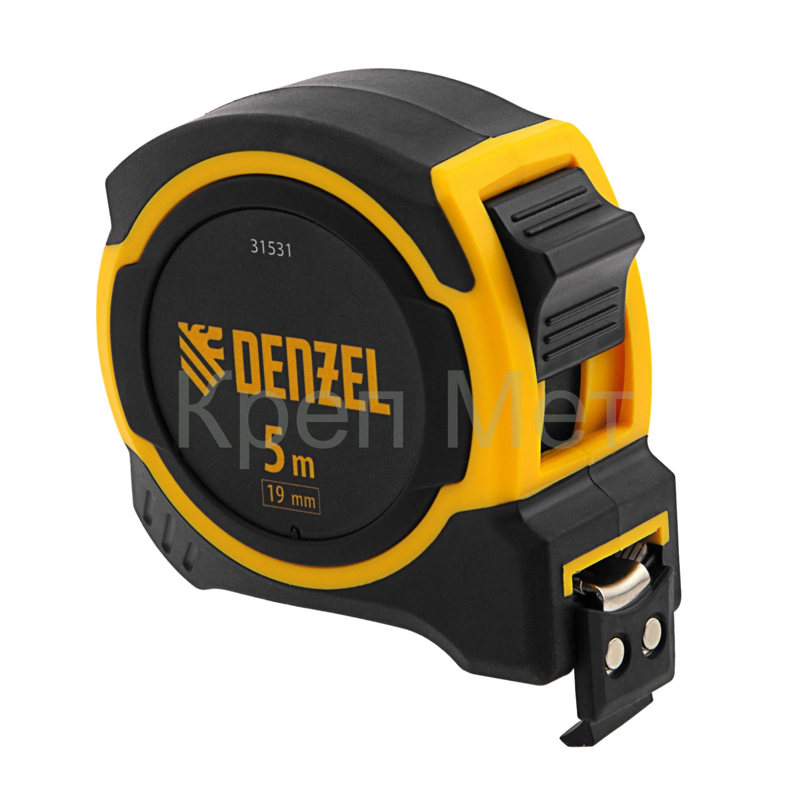 - Рулетка 5м х 19мм, двухкомп. корпус, магнитный обрезиненный зацеп Denzel