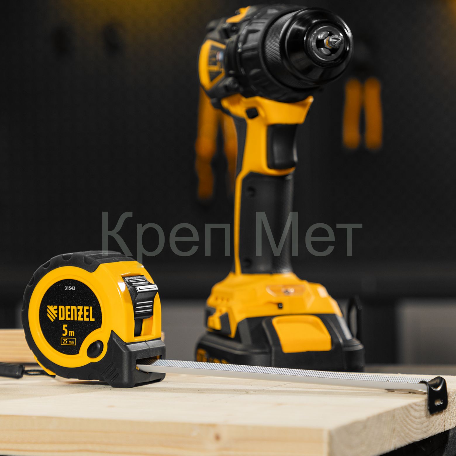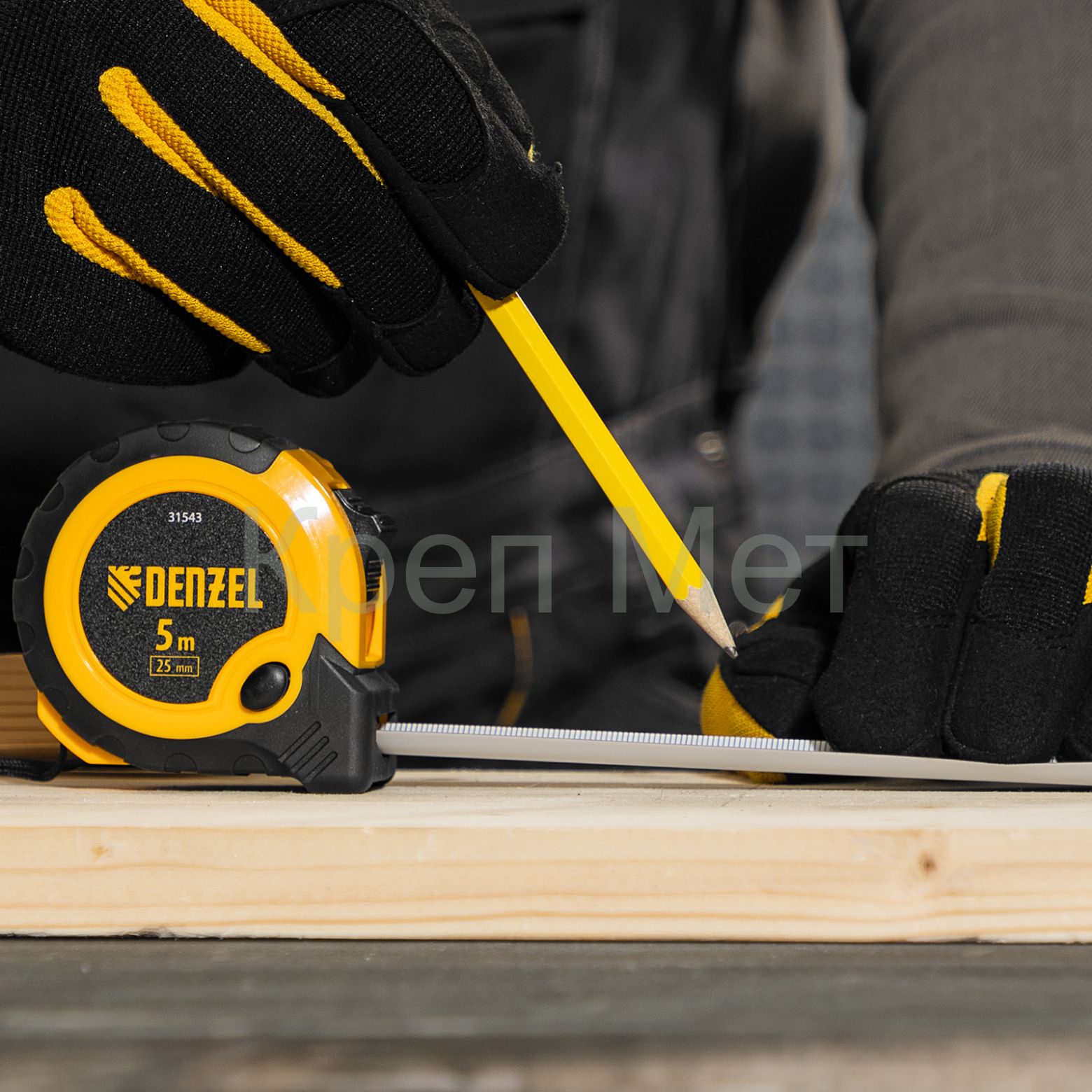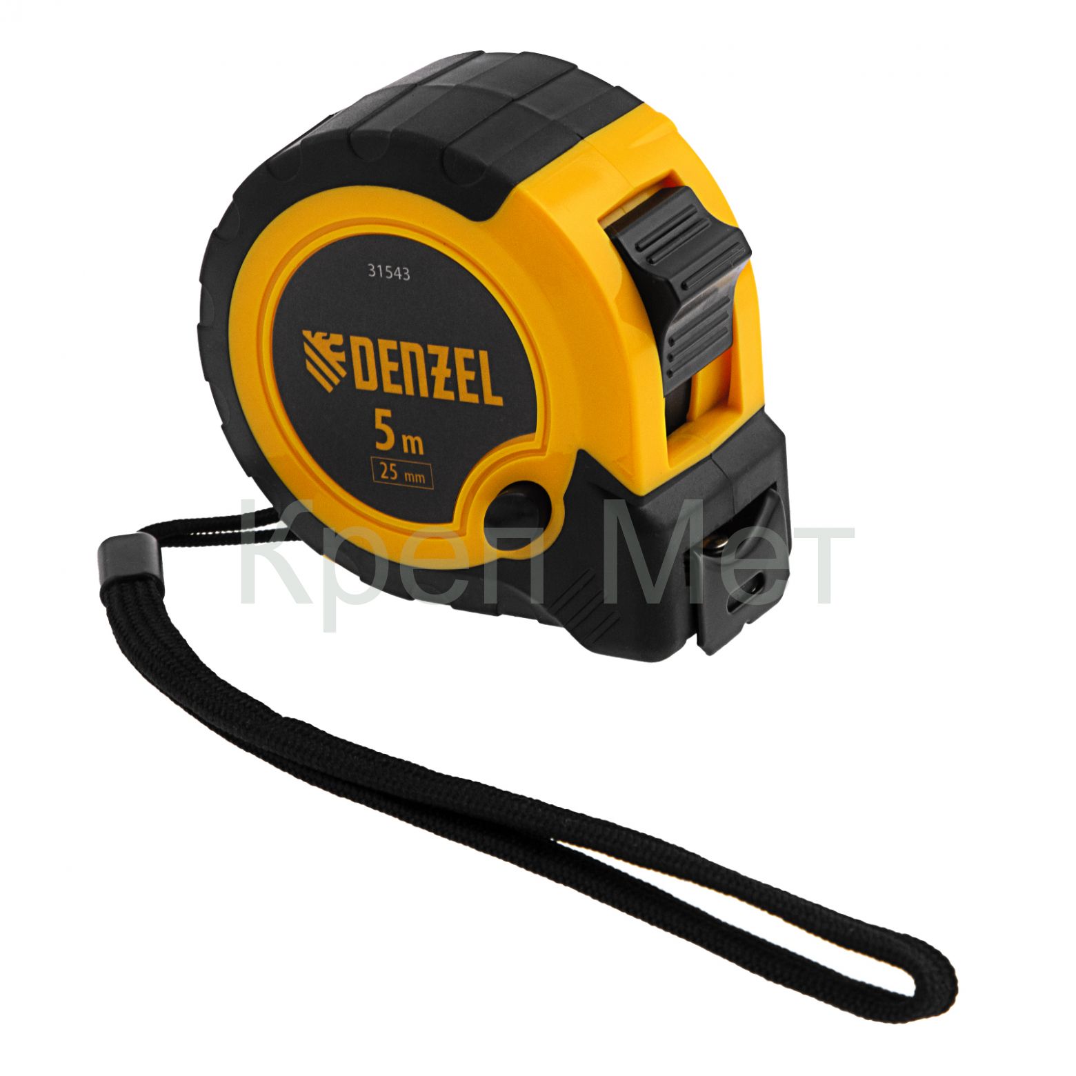 - Рулетка 5м х 25мм, двухкомп. корпус, кнопка-пауза Denzel