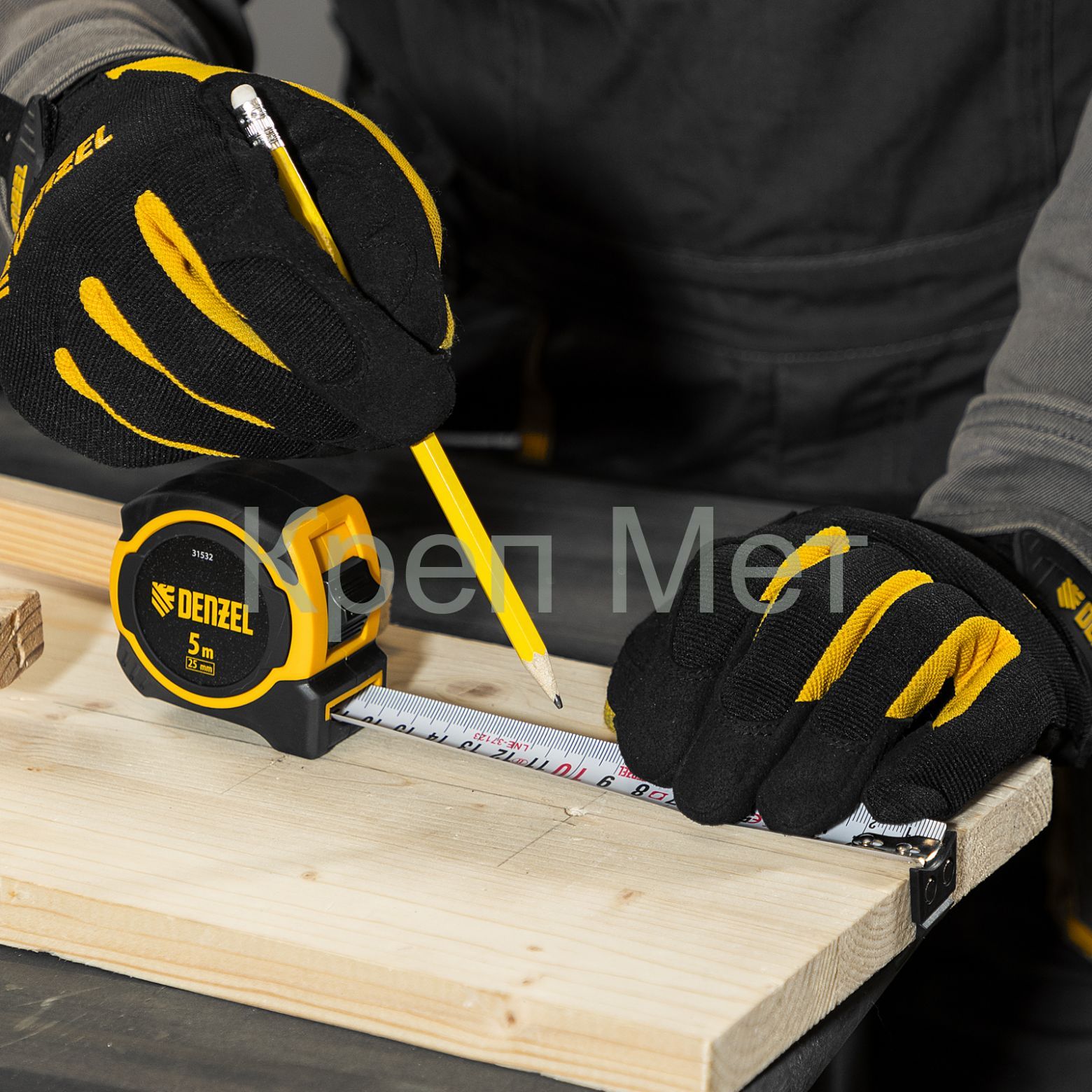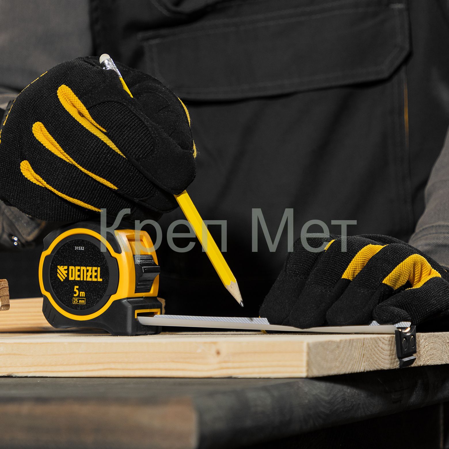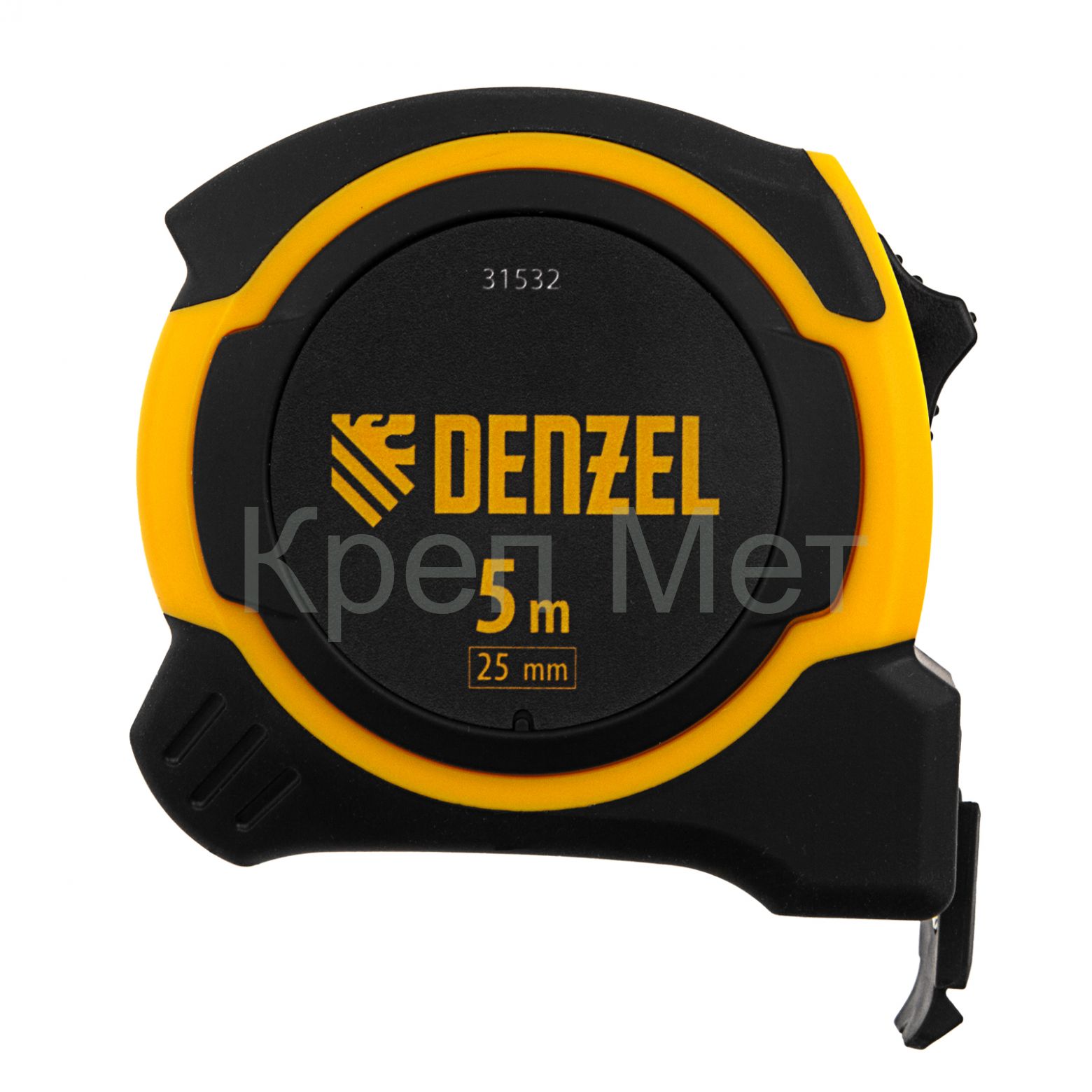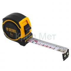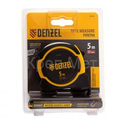- Рулетка 5м х 25мм, двухкомп. корпус, магнитный обрезиненный зацеп Denzel
