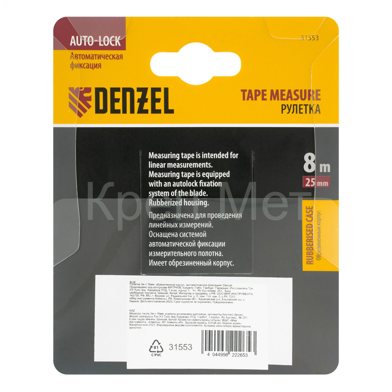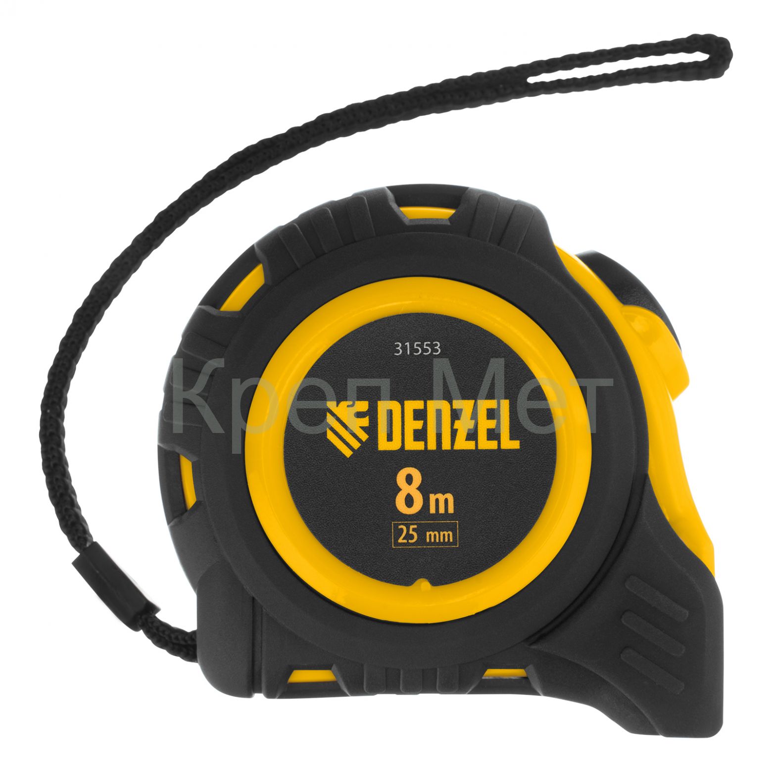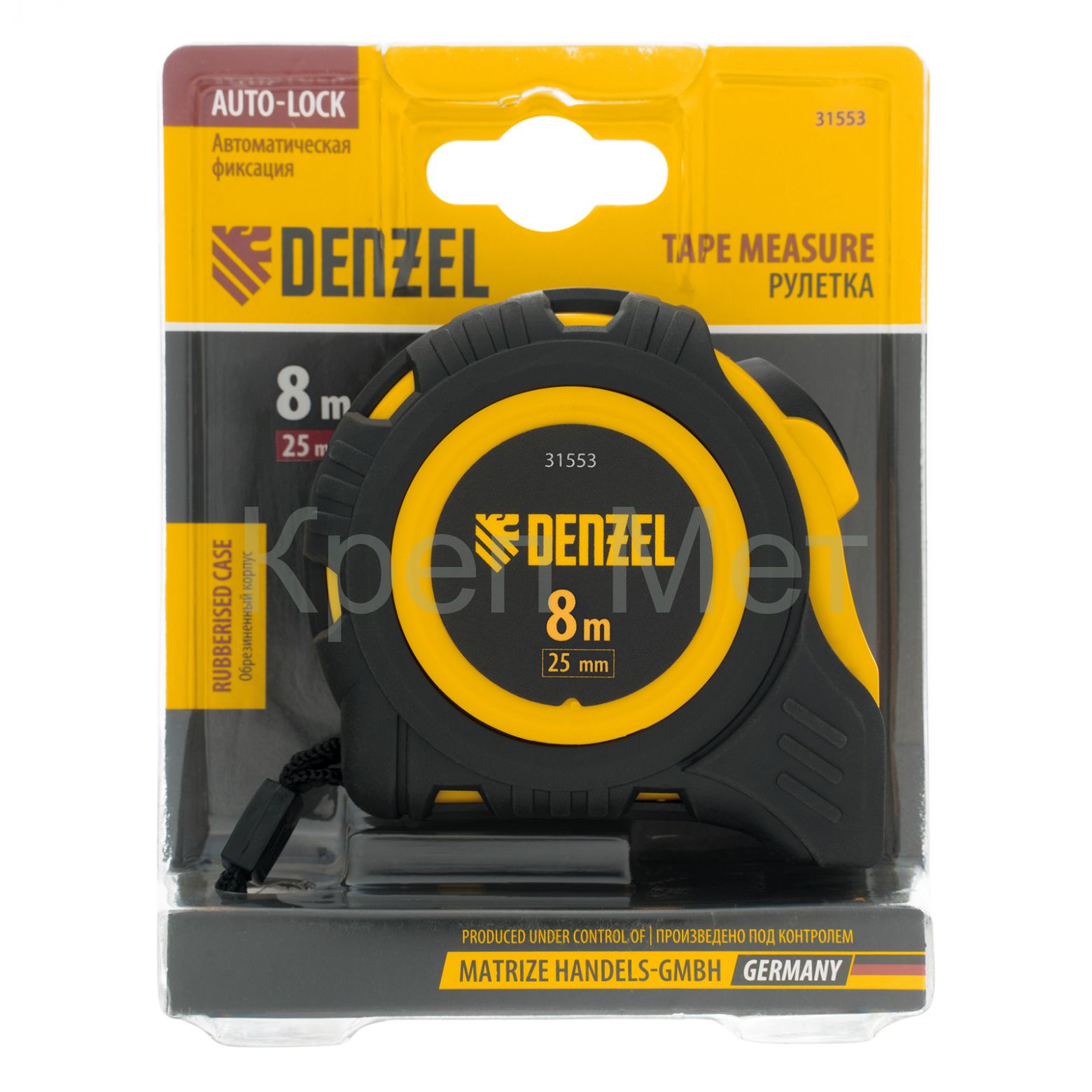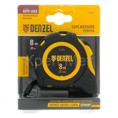 - Рулетка 8м х 25мм, обрезиненный корпус, автоматическая фиксация Denzel