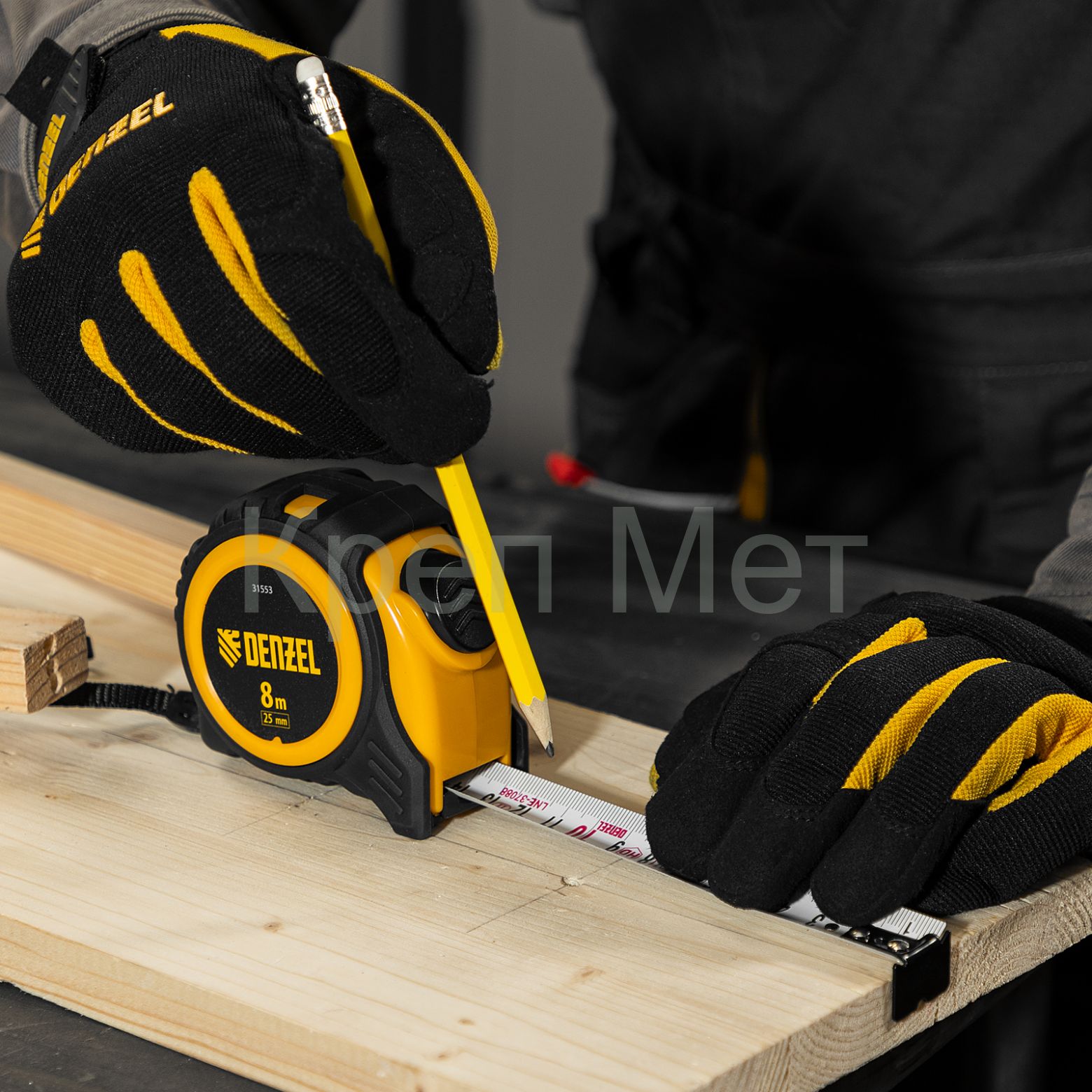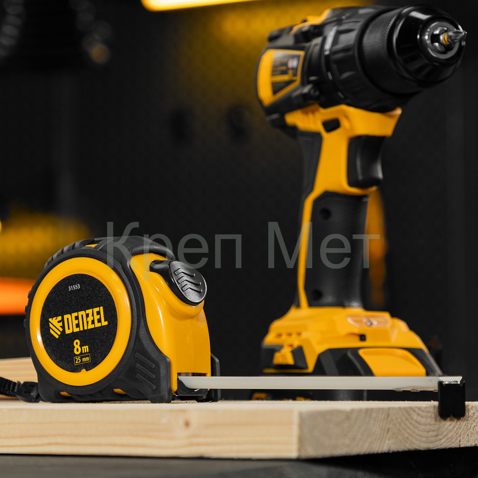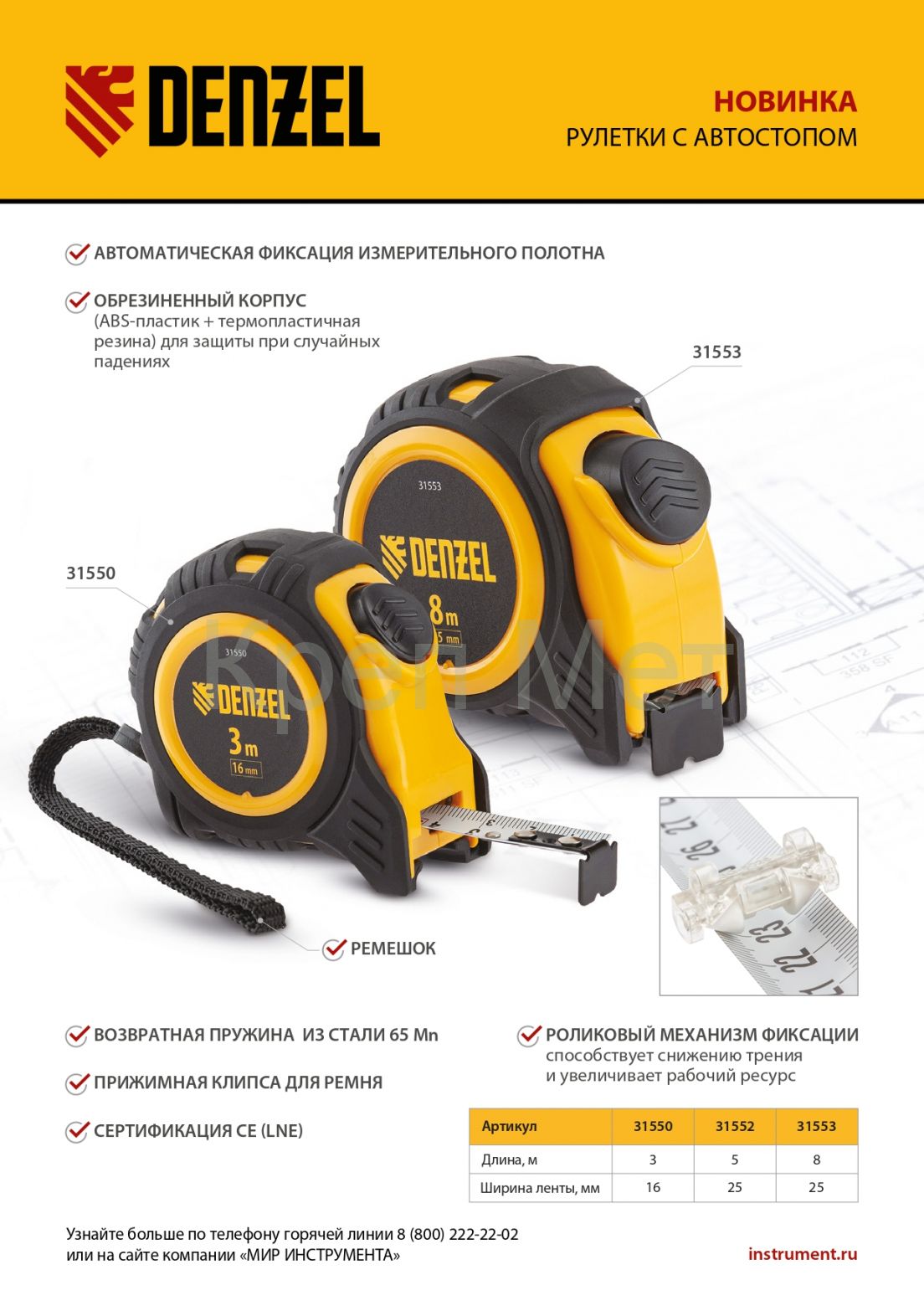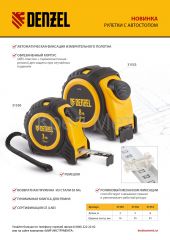 - Рулетка 8м х 25мм, обрезиненный корпус, автоматическая фиксация Denzel