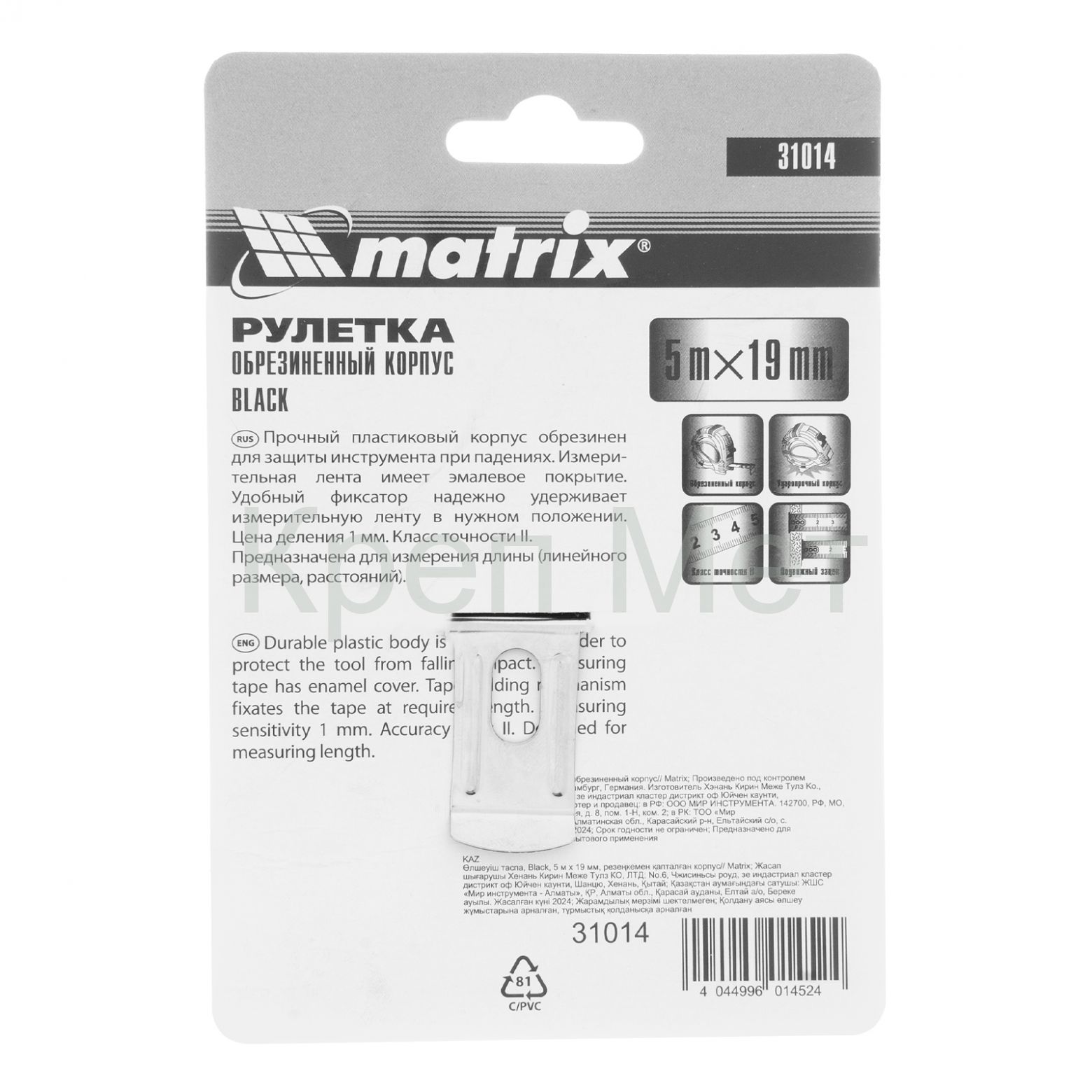 - Рулетка Black,5 м х 19 мм,обрезиненный корпус Matrix