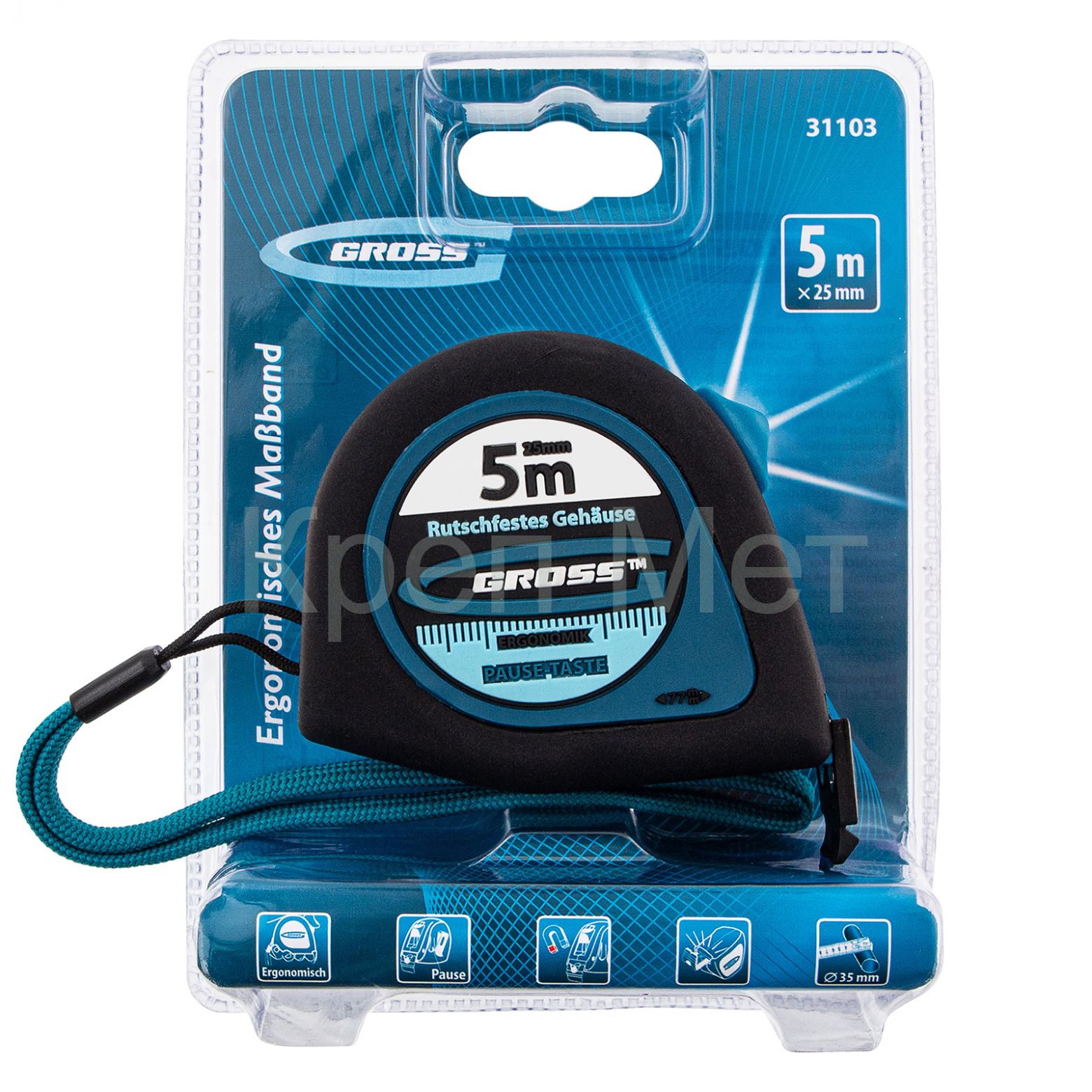 - Рулетка "Ergonomisch",5 м x 25 мм,магнитный обрезиненный зацеп Gross