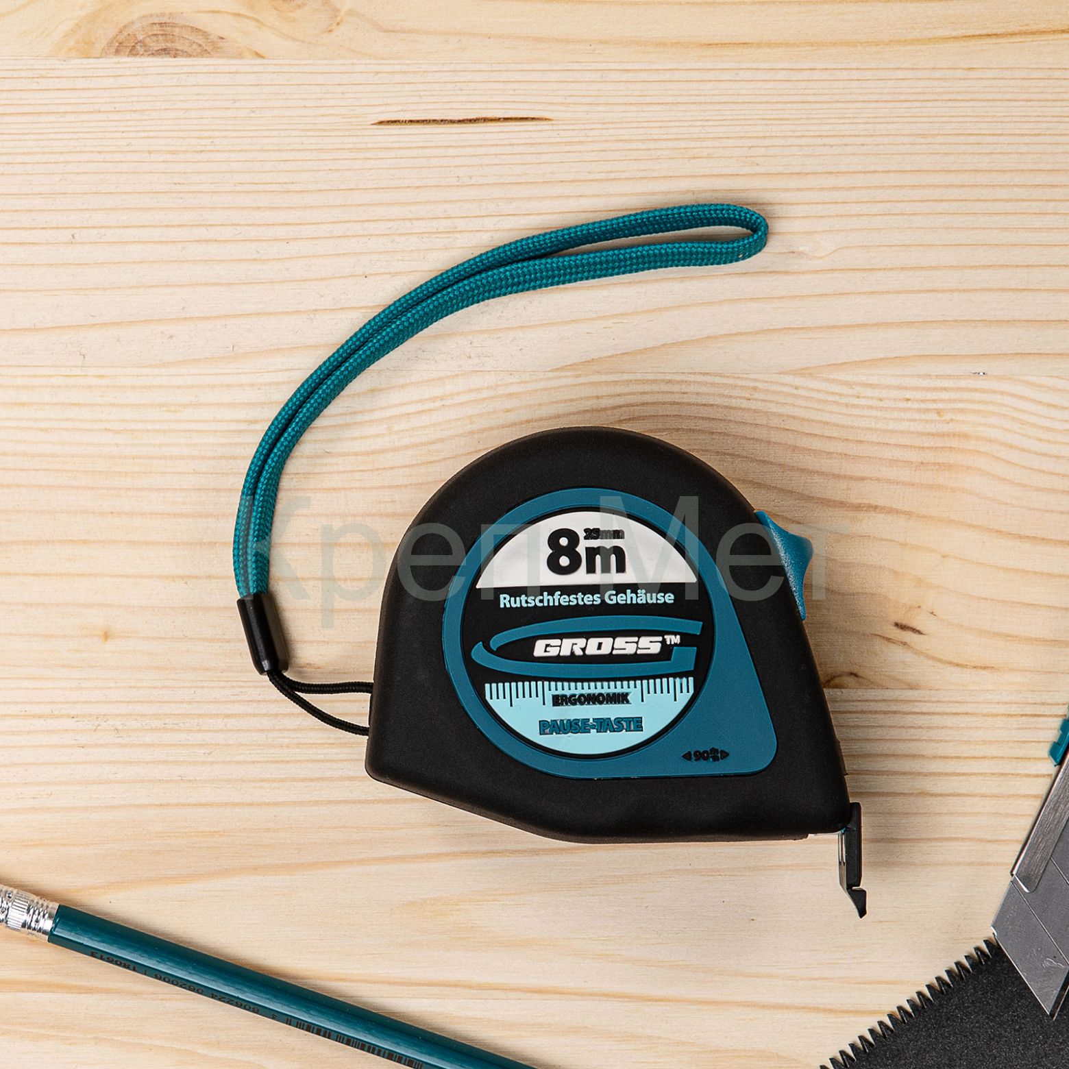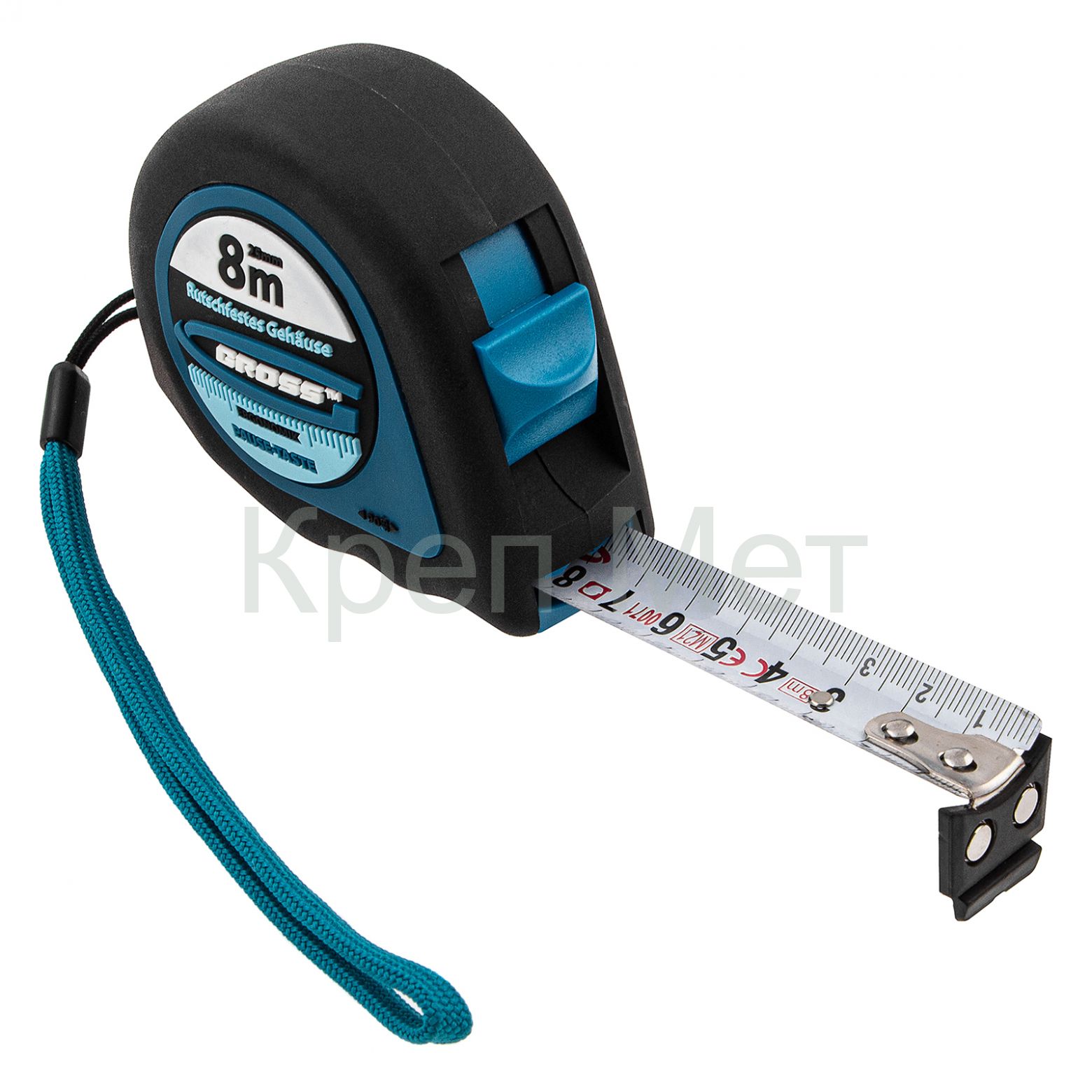 Рулетка "Ergonomisch",8 м x 25 мм,магнитный обрезиненный зацеп Gross