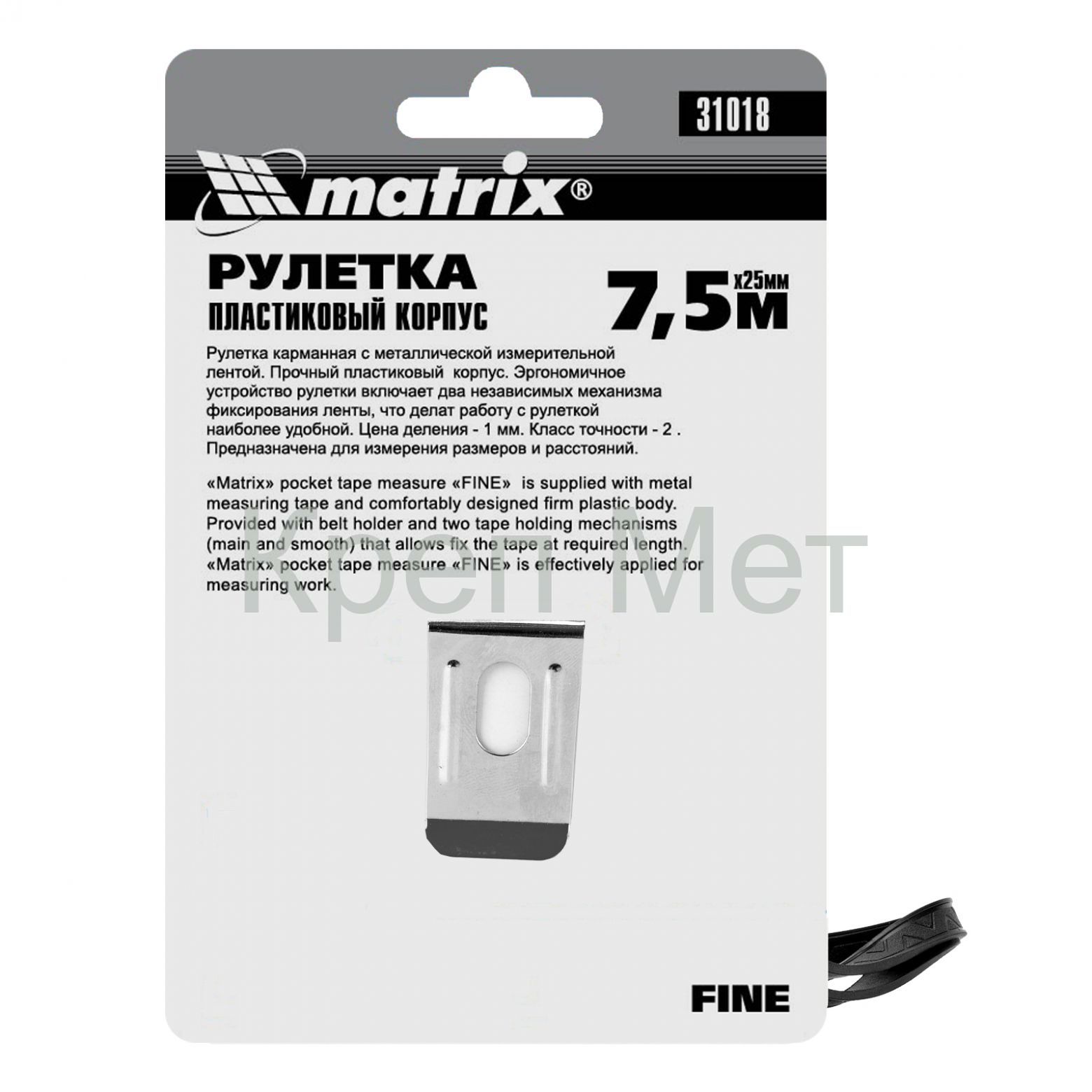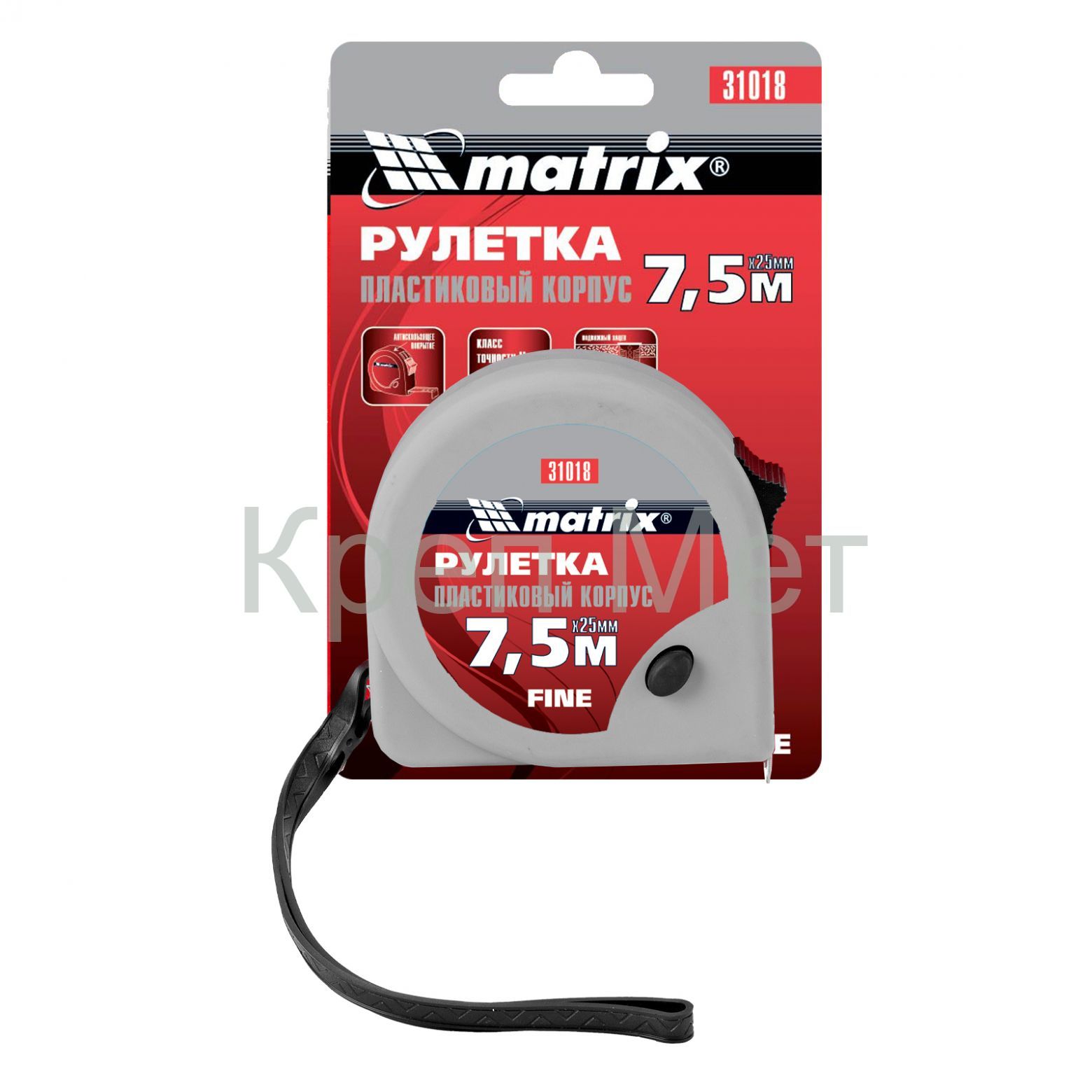 - Рулетка Fine,7,5 м х 25 мм,пластиковый корпус Matrix