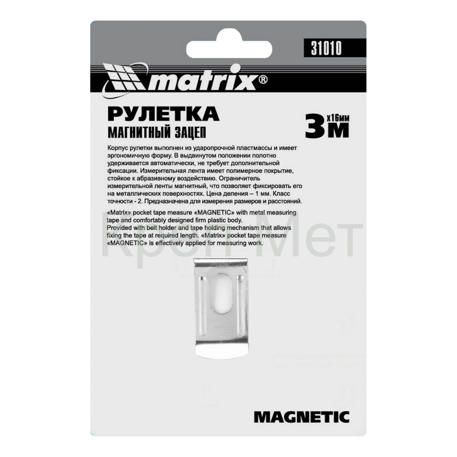 - Рулетка Magnetic,3 м х 16 мм,магнитный зацеп Matrix