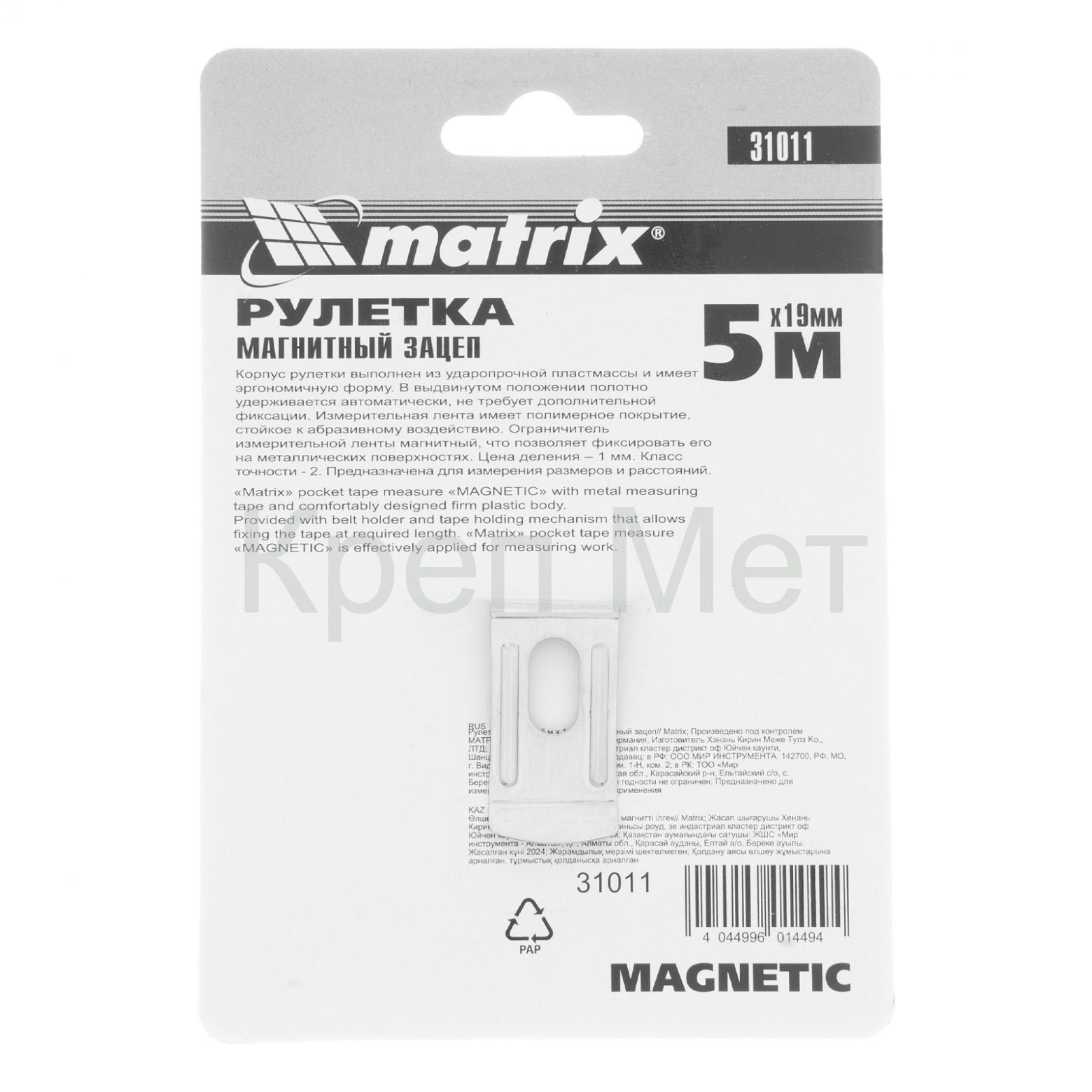 Рулетка Magnetic,5 м х 19 мм,магнитный зацеп Matrix