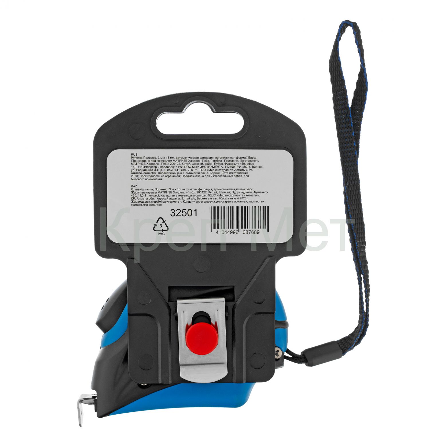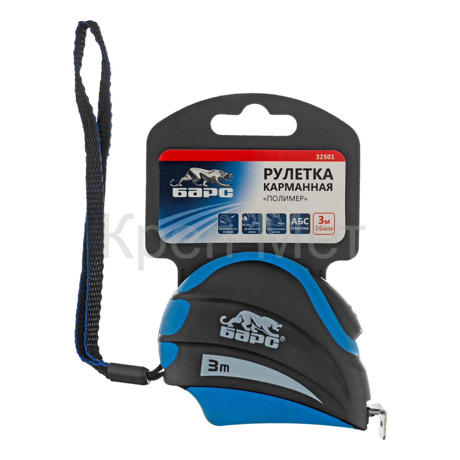 - Рулетка Полимер,3 м х 16 мм,автоматическая фиксация,эргономичная форма Барс