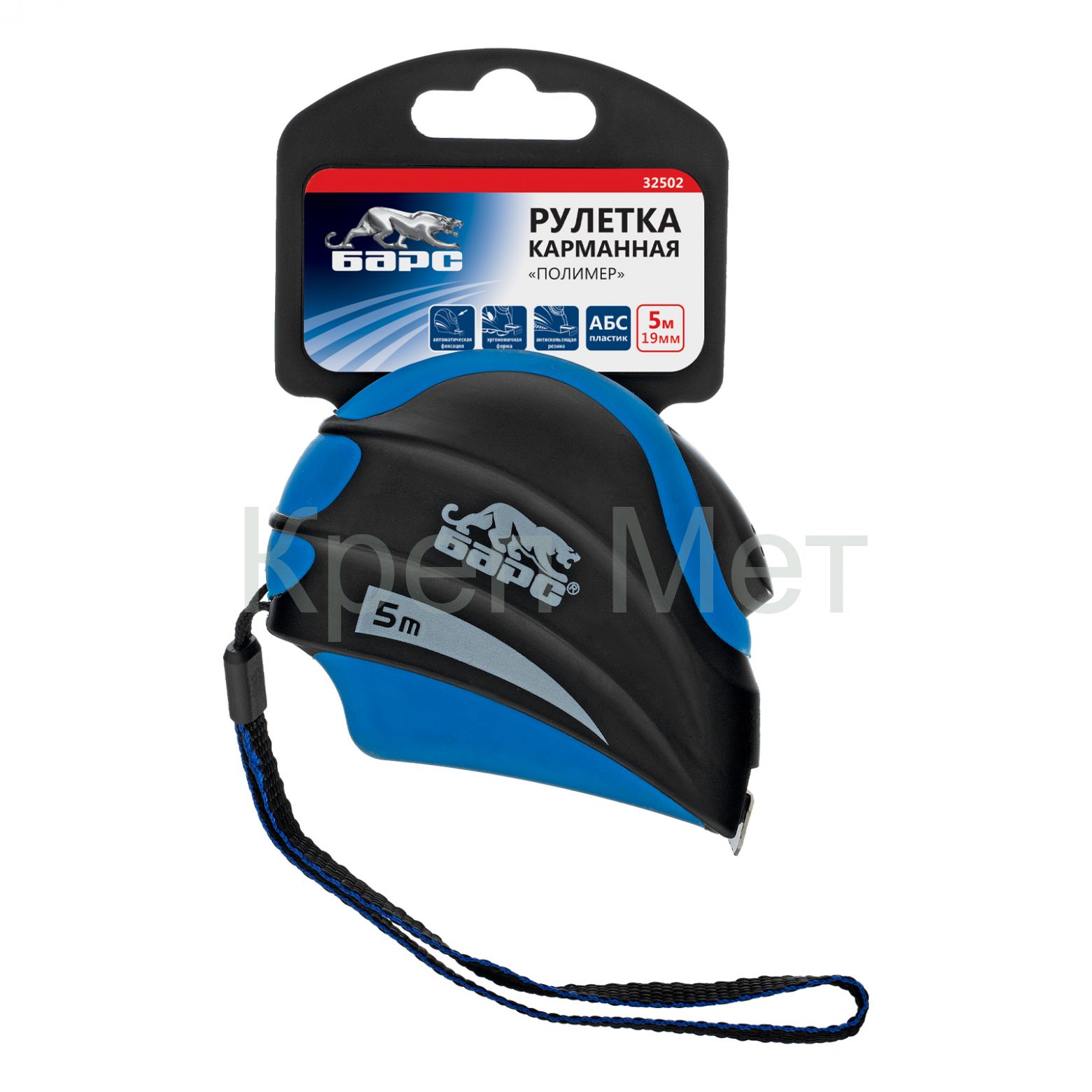 - Рулетка Полимер,5 м х 19 мм,автоматическая фиксация,эргономичная форма Барс
