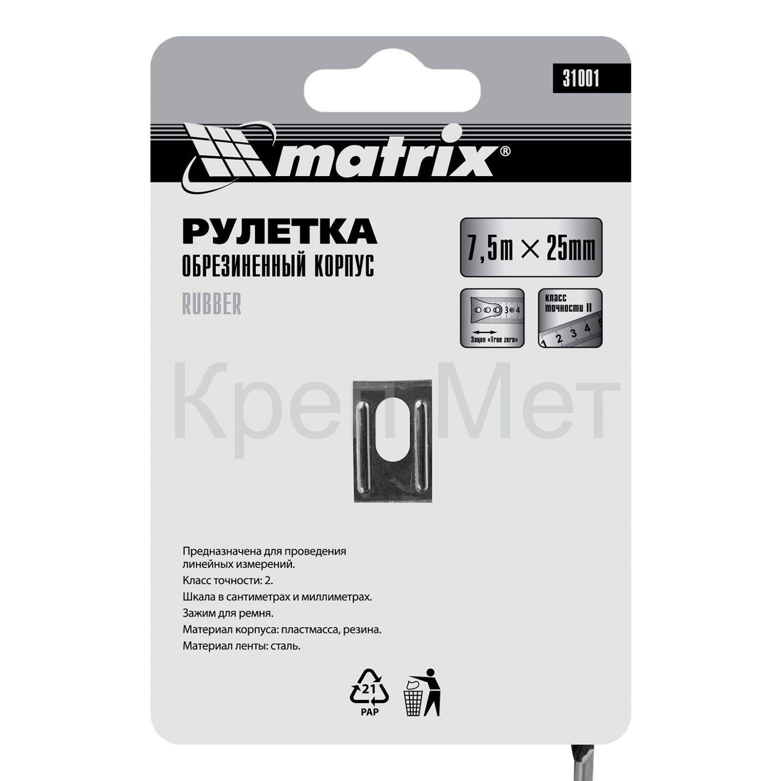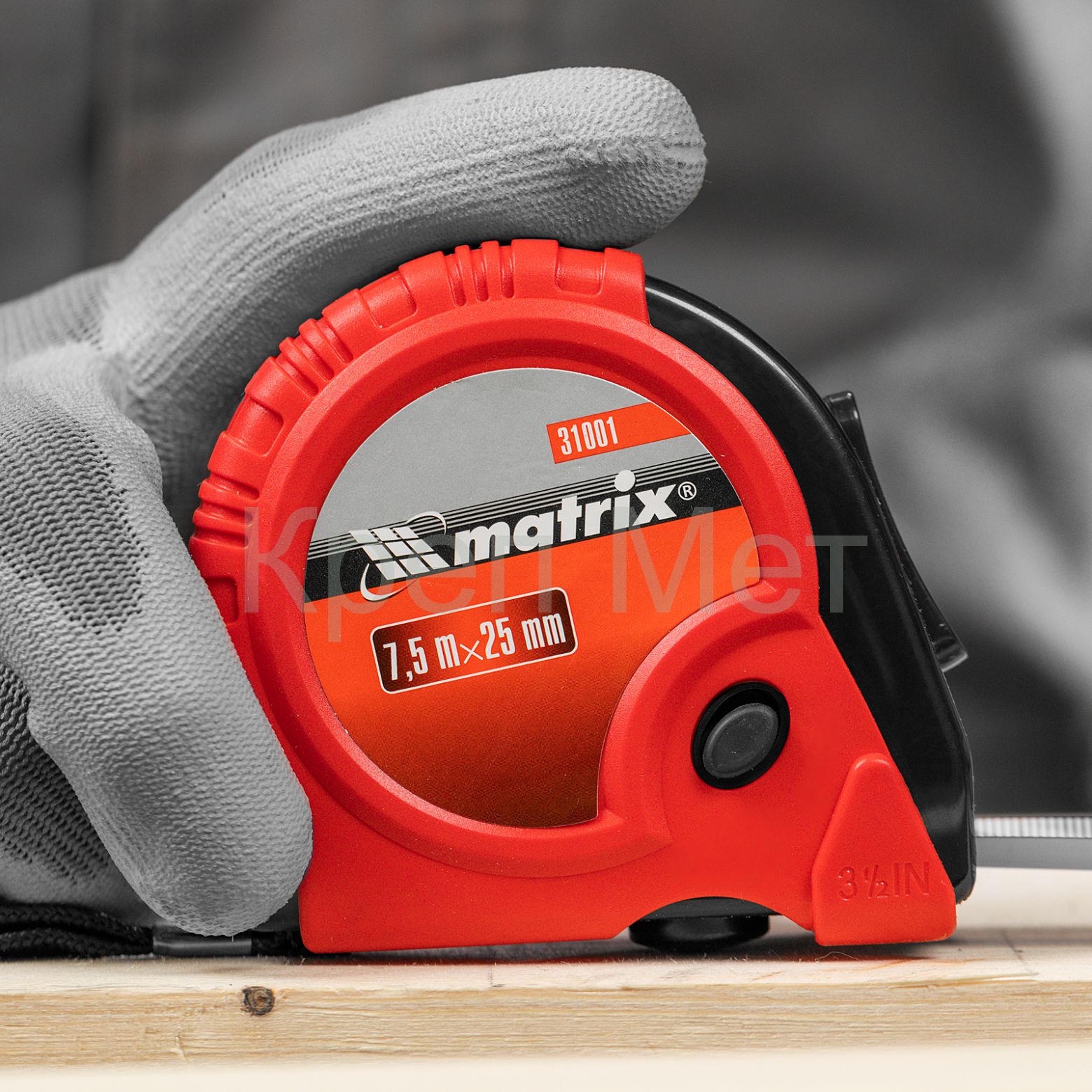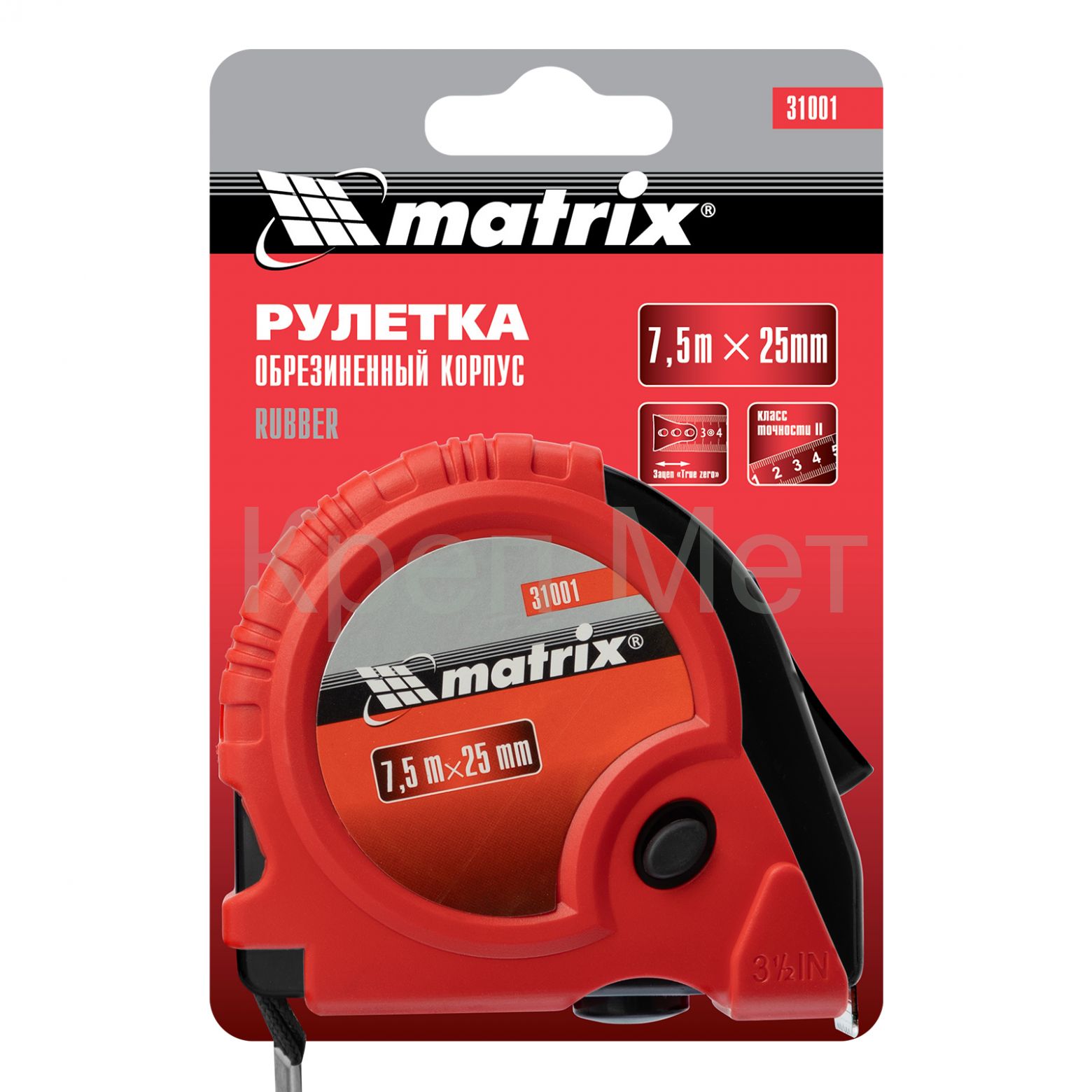 - Рулетка Rubber,7,5 м х 25 мм,обрезиненный корпус Matrix