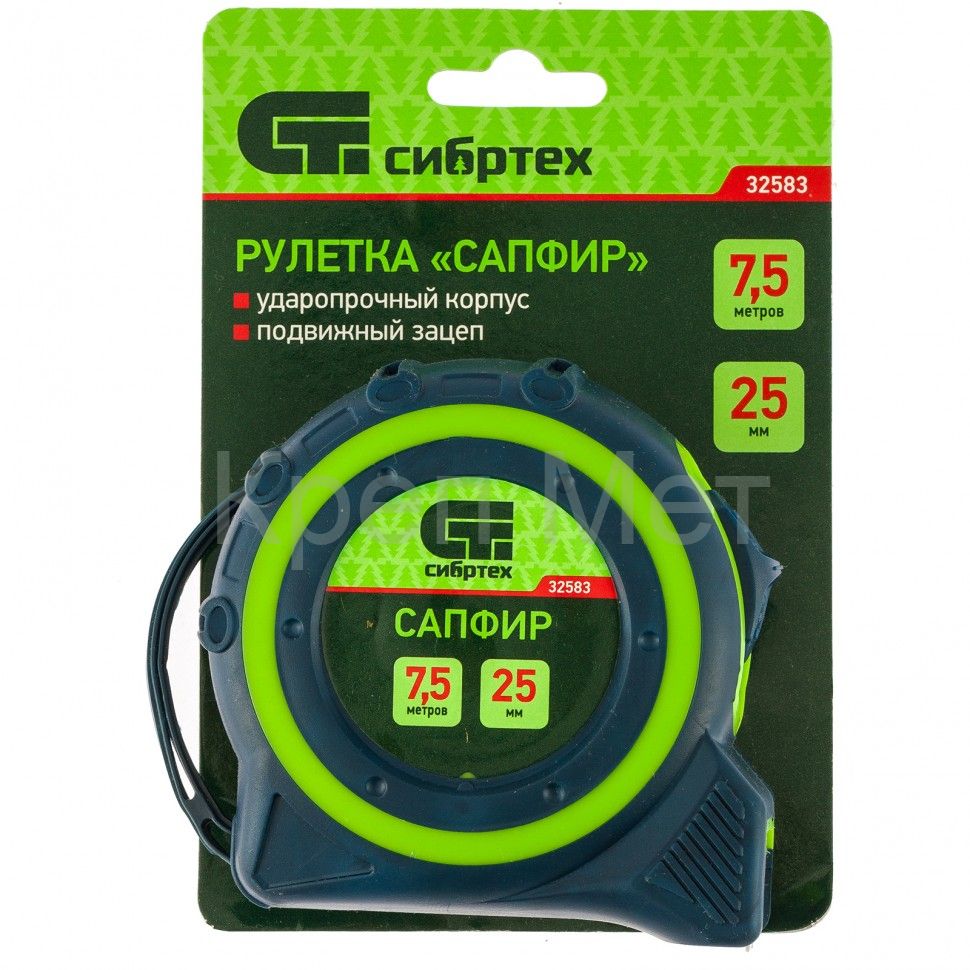 - Рулетка Сапфир,двухкомпонентный корпус,7,5 м х 25 мм Сибртех