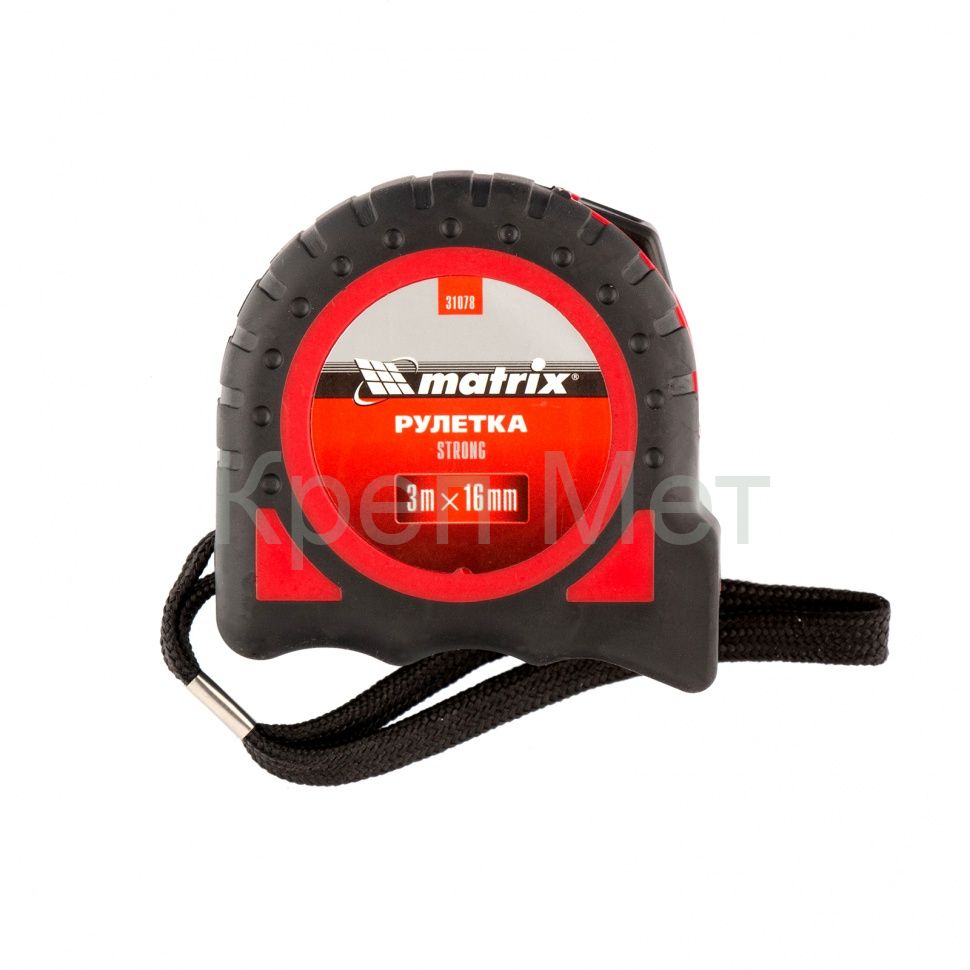 - Рулетка Strong,3 м х 16 мм,обрезиненный корпус Matrix