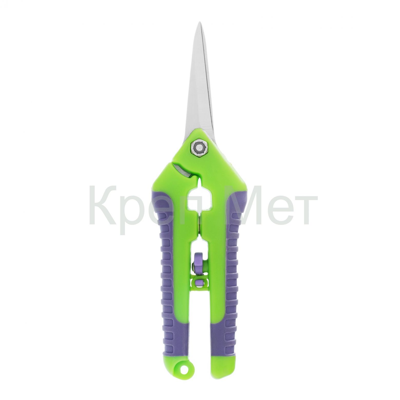 Цветочный секатор для бонсай и топиария Palisad 60499 длиной 160 мм, с двухкомпонентными рукоятками, срезает молодые побеги и стебли толщиной до 10 мм. Движущиеся в параллельных плоскостях лезвия обеспечивают ровный аккуратный срез. Регулировочный винт позволяет контролировать плотность смыкания лезвий. Инструмент применяется для ухода за цветами, оформления крон бонсай и топиарных скульптур. Подходит также для использования в хозяйственных целях — разрезания картона, бумаги, ткани, подвязочного материала. Секатор будет полезен на дачном участке.