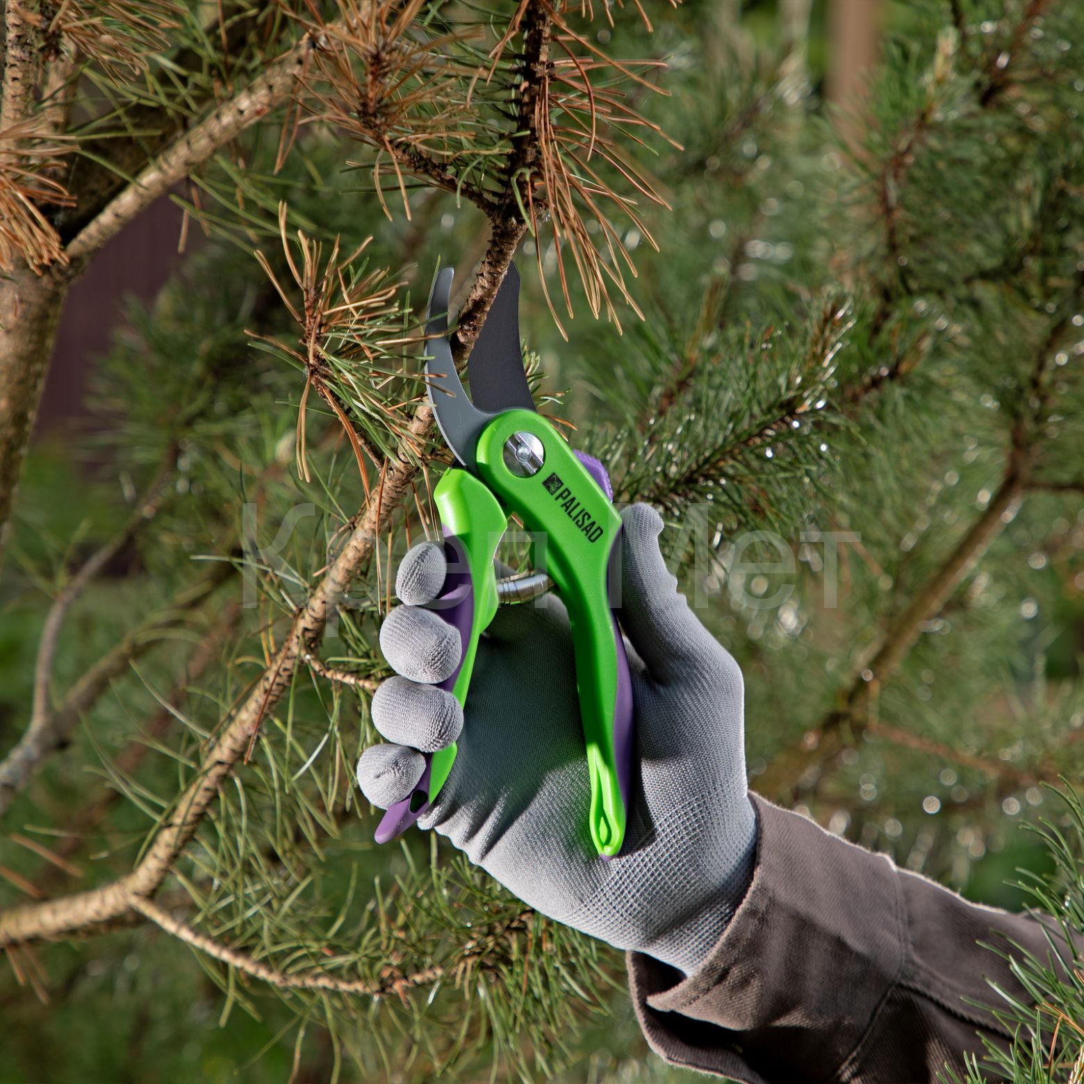 Секатор прямого реза Palisad 60536 длиной 200 мм, с двухкомпонентными рукоятками, способен обрезать живые ветки толщиной до 15 мм и используется для ухода за растительностью. Имеет режущее лезвие с прецизионной заточкой и тефлоновым покрытием, движущееся в параллельной плоскости с опорным лезвием, поэтому срез получается гладким и ровным. Повреждения растения при этом минимальны. Плотность смыкания лезвий регулируется винтом. Секатор будет полезен на дачном участке.