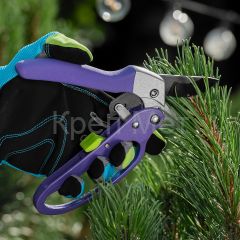 - Безопасность — гарда на нижней рукоятке защищает пальцы от травм, фиксатор удерживает лезвия в сомкнутом положении во время хранения и транспортировки.
