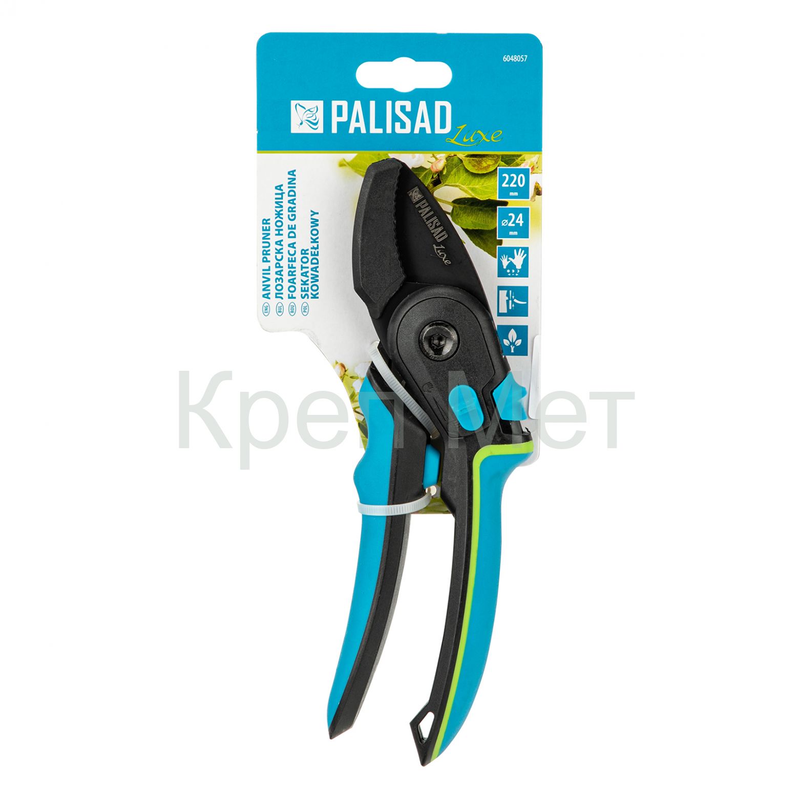 - Секатор с наковальней, 220 мм, регулировка захвата, трехкомпонентные рукоятки, LUXE Palisad