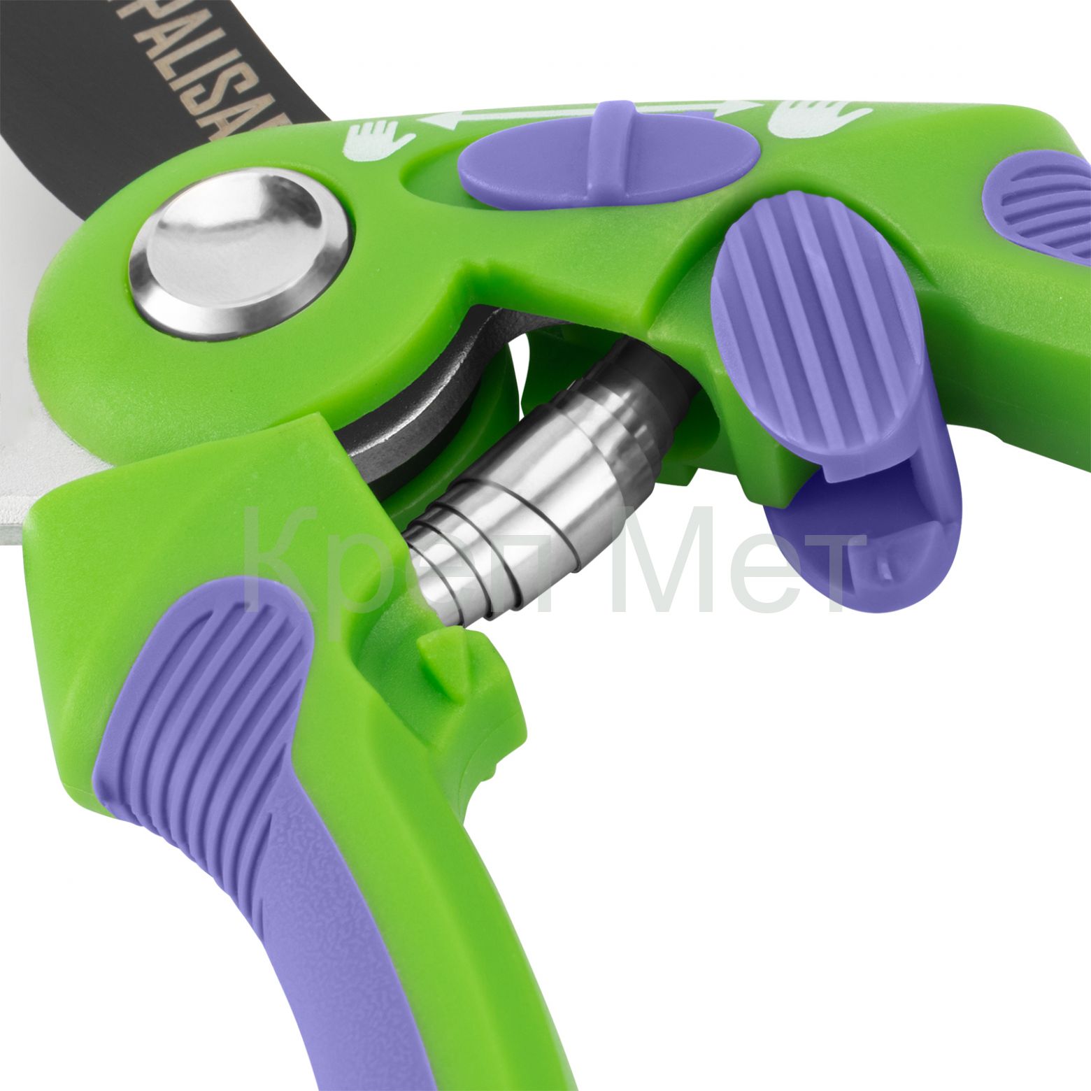 - Регулировка величины захвата — переключатель «большая-малая рука» позволяет устанавливать ширину раскрытия лезвий.