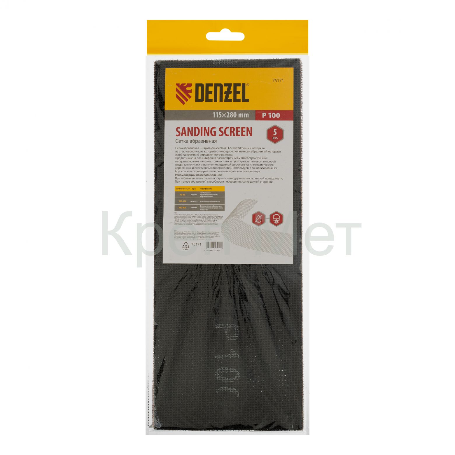 Сетка абразивная, P 100, 115 х 280 мм, 5 шт Denzel