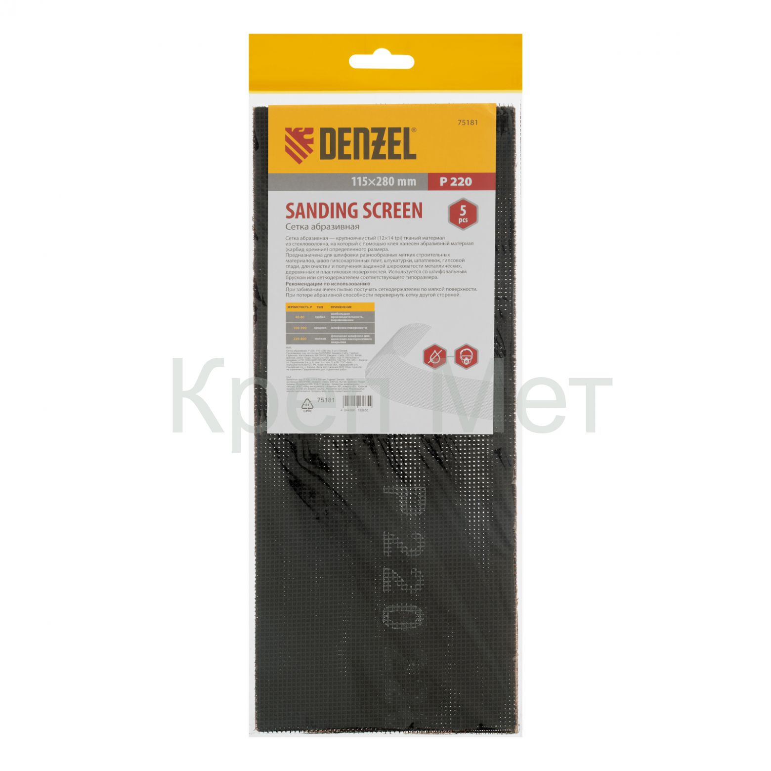 - Сетка абразивная, P 220, 115 х 280 мм, 5 шт Denzel