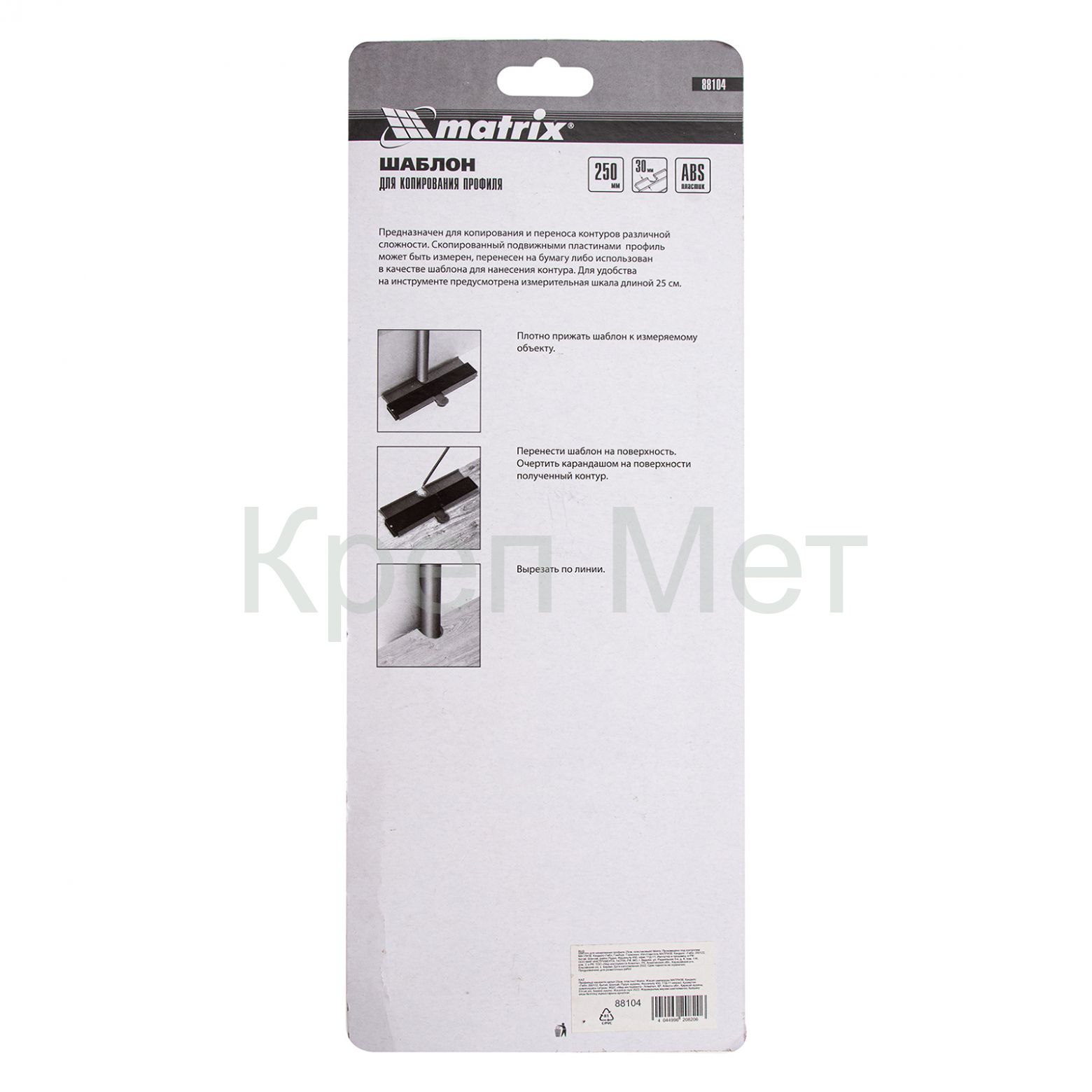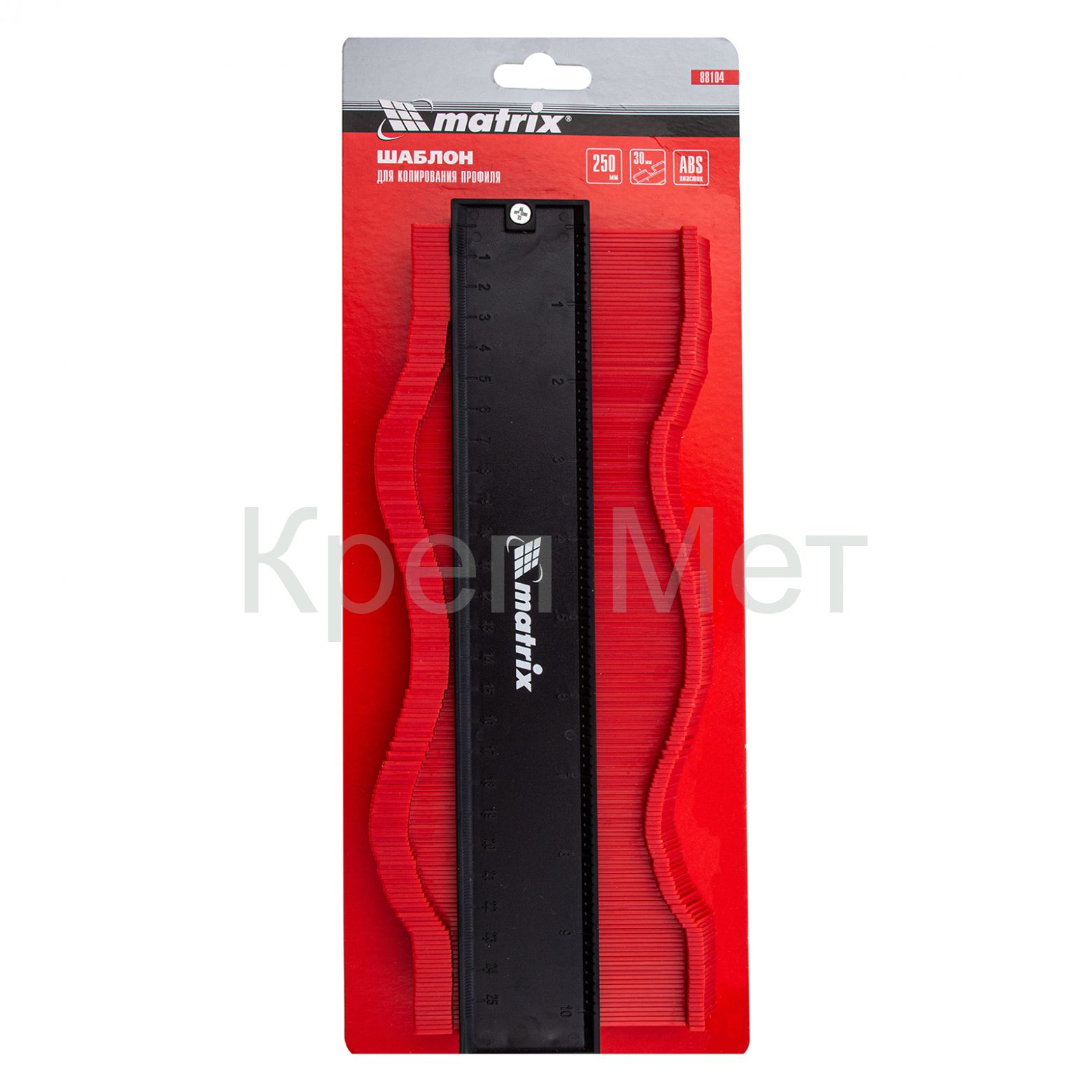 Пластиковый шаблон для копирования профиля Matrix 88104 предназначен для копирования и переноса контуров различных форм. Шаблон необходим для точной подрезки отделочных материалов (ламинат, линолеум, кафельная плитка, гипсокартон и др.) при обходе труб водоснабжения, углов и других рельефных препятствий. Перенос контуров осуществляется при помощи выдвижных пластиковых пластин. Шаблон оснащен измерительной шкалой длиной 25 см.