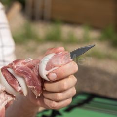 - Надежность и долговечность — шампур из нержавеющей стали не боится коррозии, за счет увеличенной толщины 2,5 мм не сгибается и не деформируется под тяжестью нанизанных продуктов.