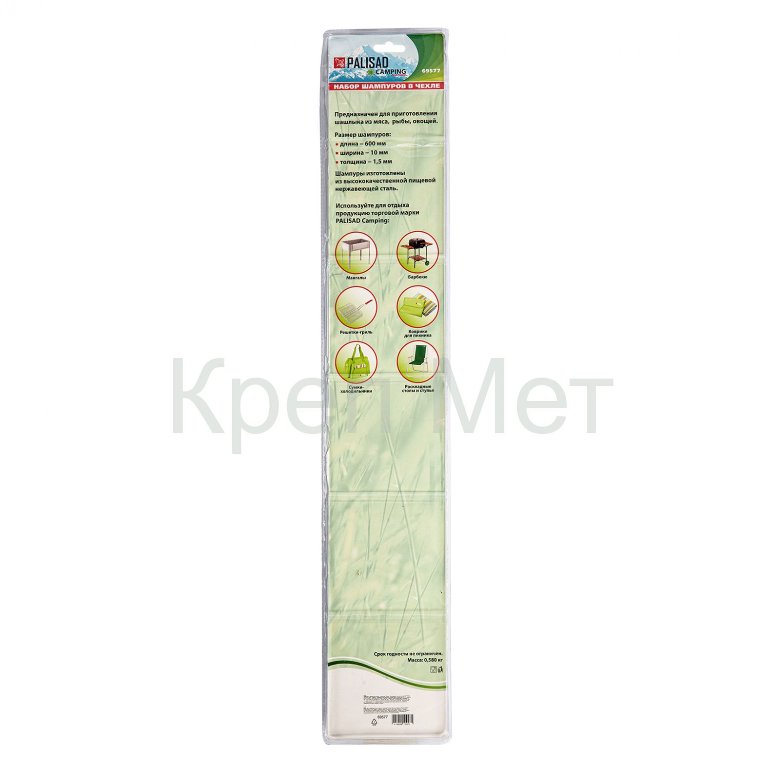 Шампуры Palisad Camping 69577 длиной 60 см, 6 штук в блистерной упаковке, позволяют легко приготовить мясо, рыбу и овощи на мангале. Пригодятся во время отдыха на даче или пикнике.