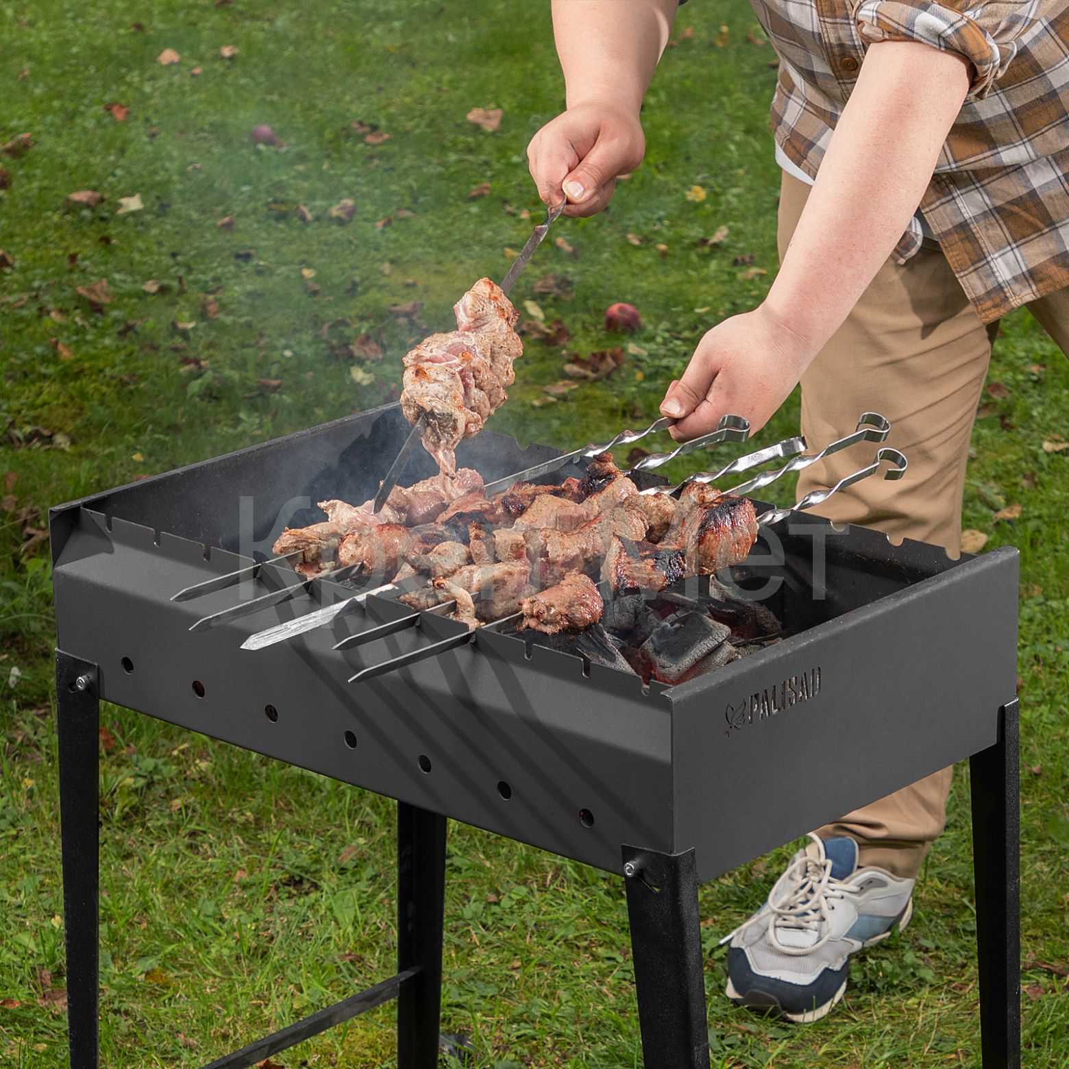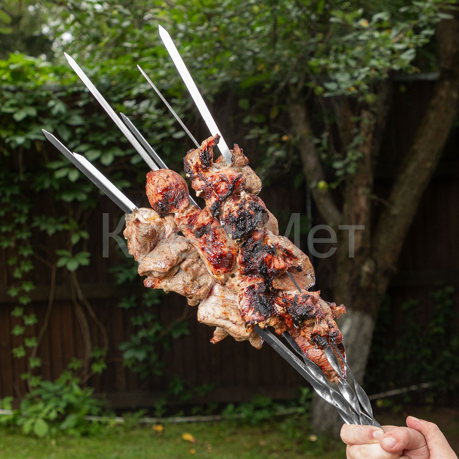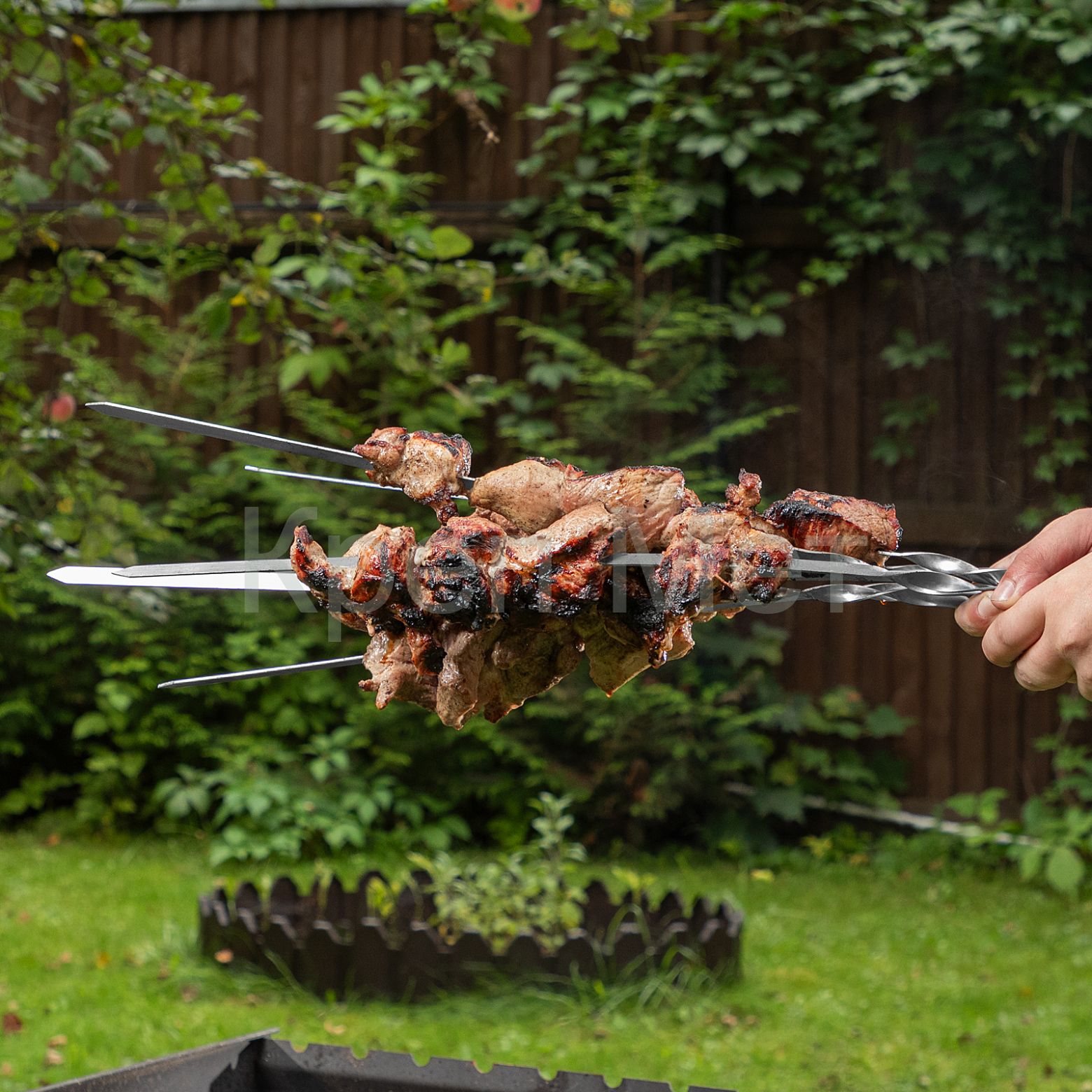 - Комфортное использование — заостренные окончания легко протыкают мясо, а винтовые ручки не прокручиваются на мангале.