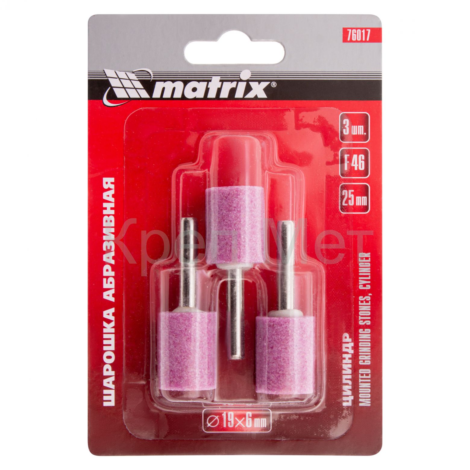 - Шарошка абразивная, цилиндр, 19 x 25 x 6 мм, F46, 3 шт Matrix