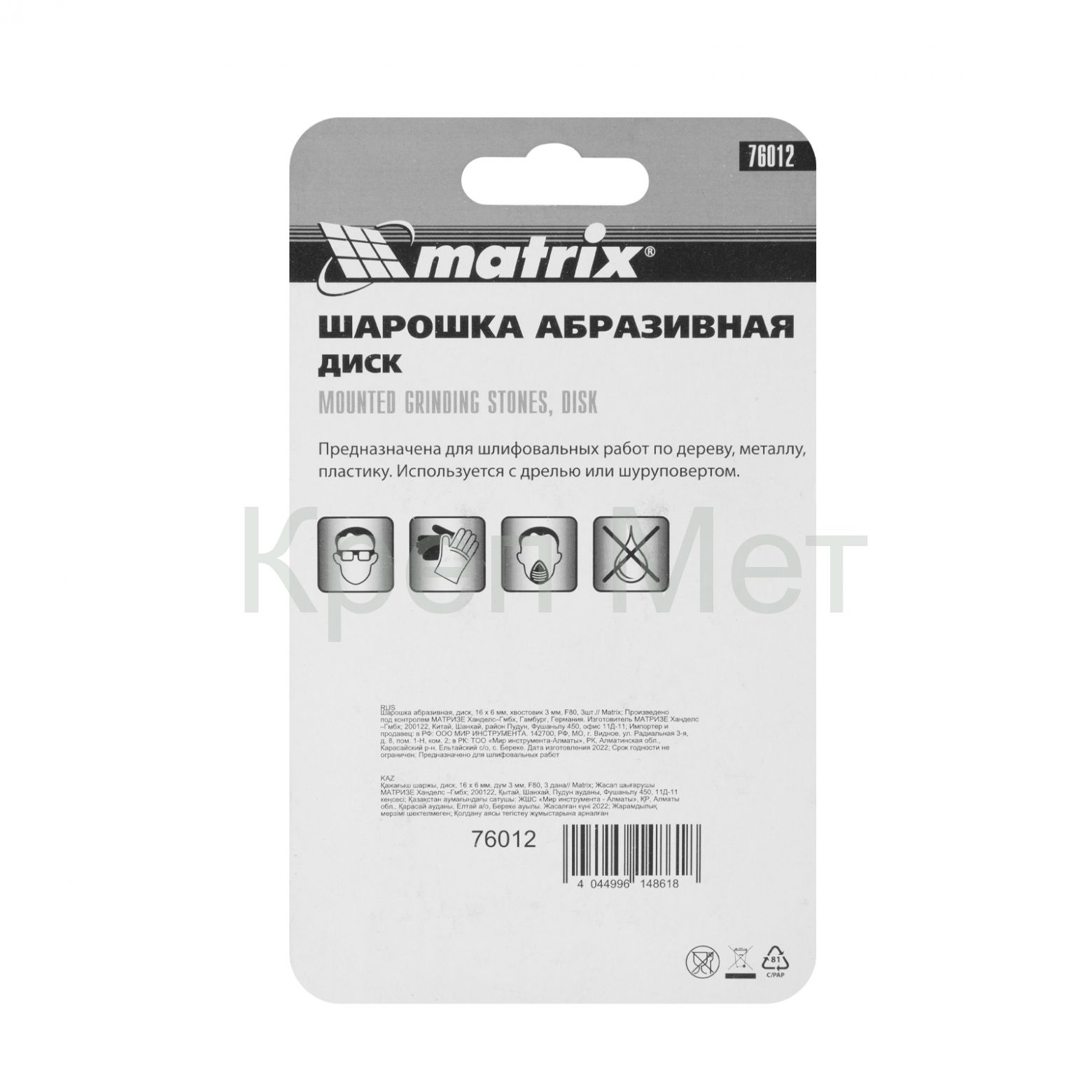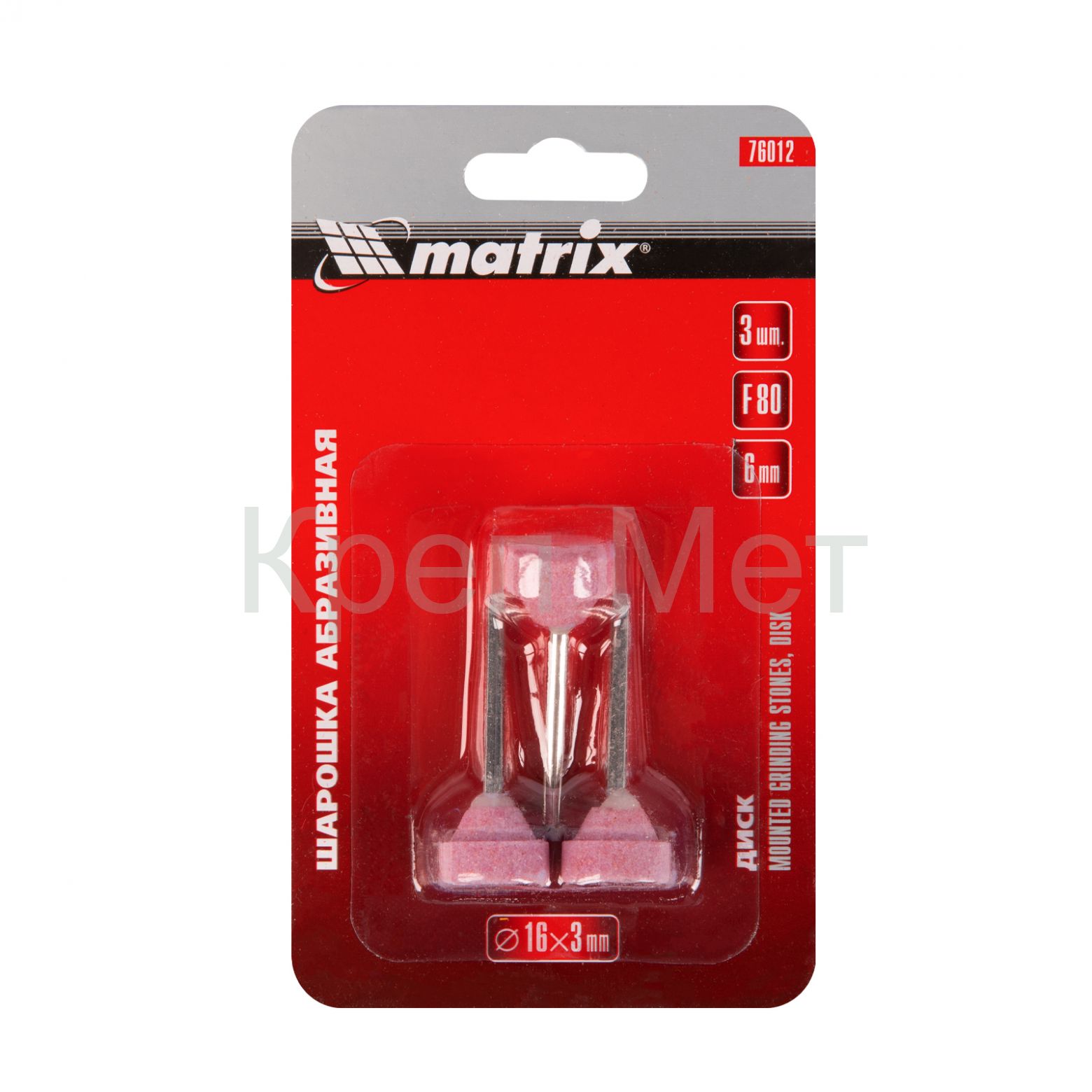 - Шарошка абразивная, диск, 16 x 6 x 3 мм, F80, 3 шт Matrix