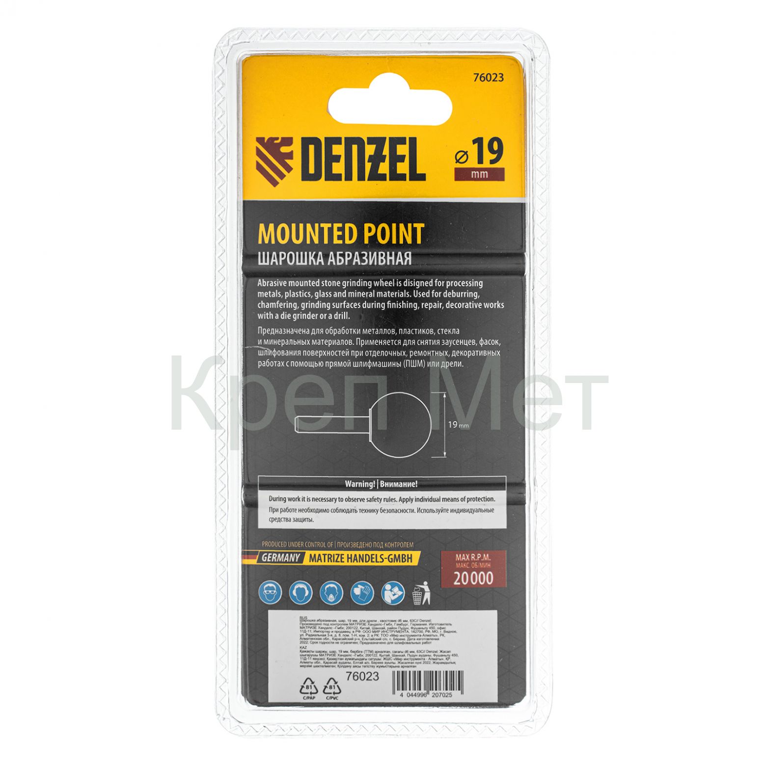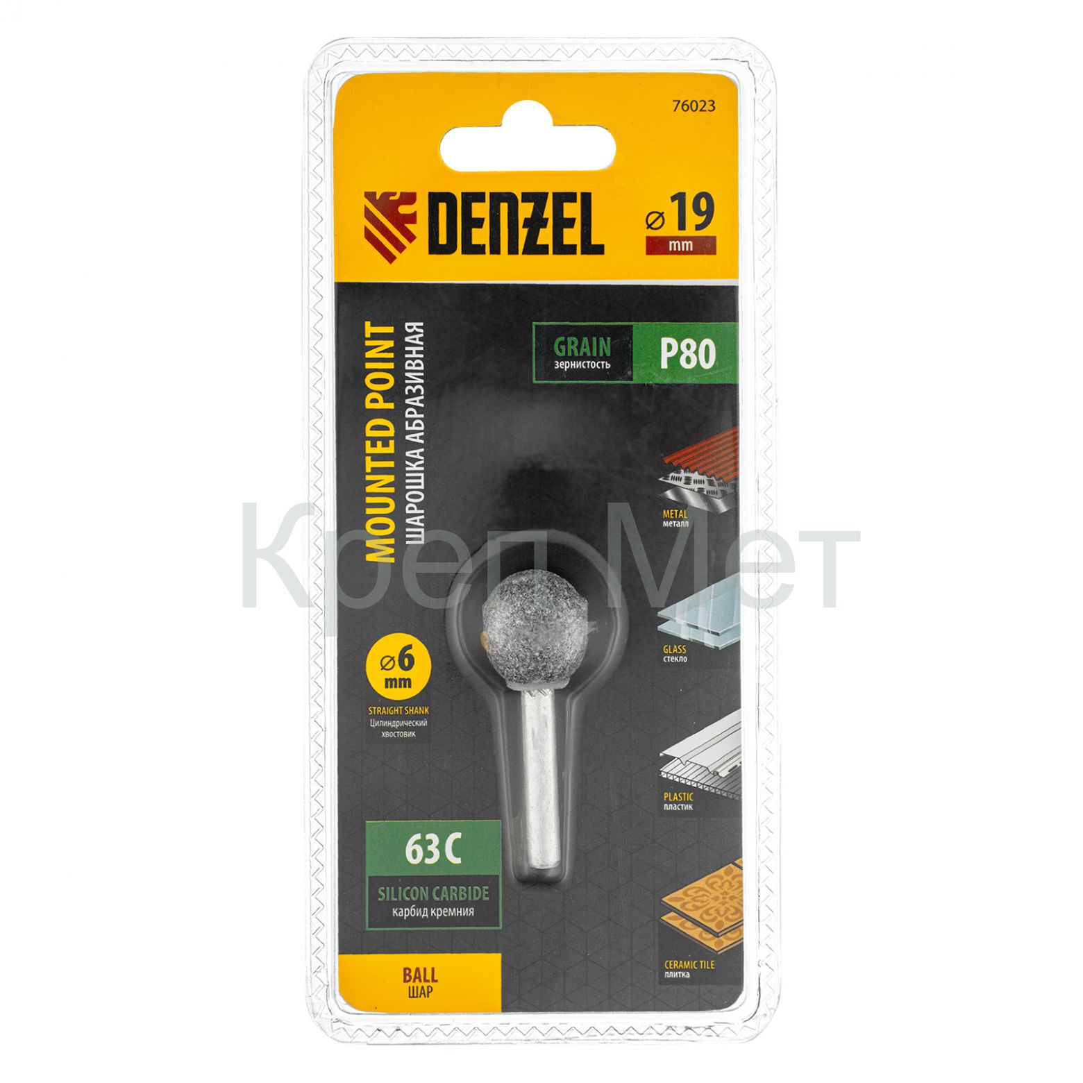 - Шарошка абразивная, шар, 19 мм, для дрели , хвостовик d6 мм, 63С Denzel