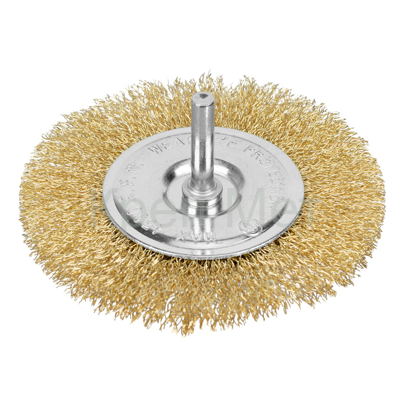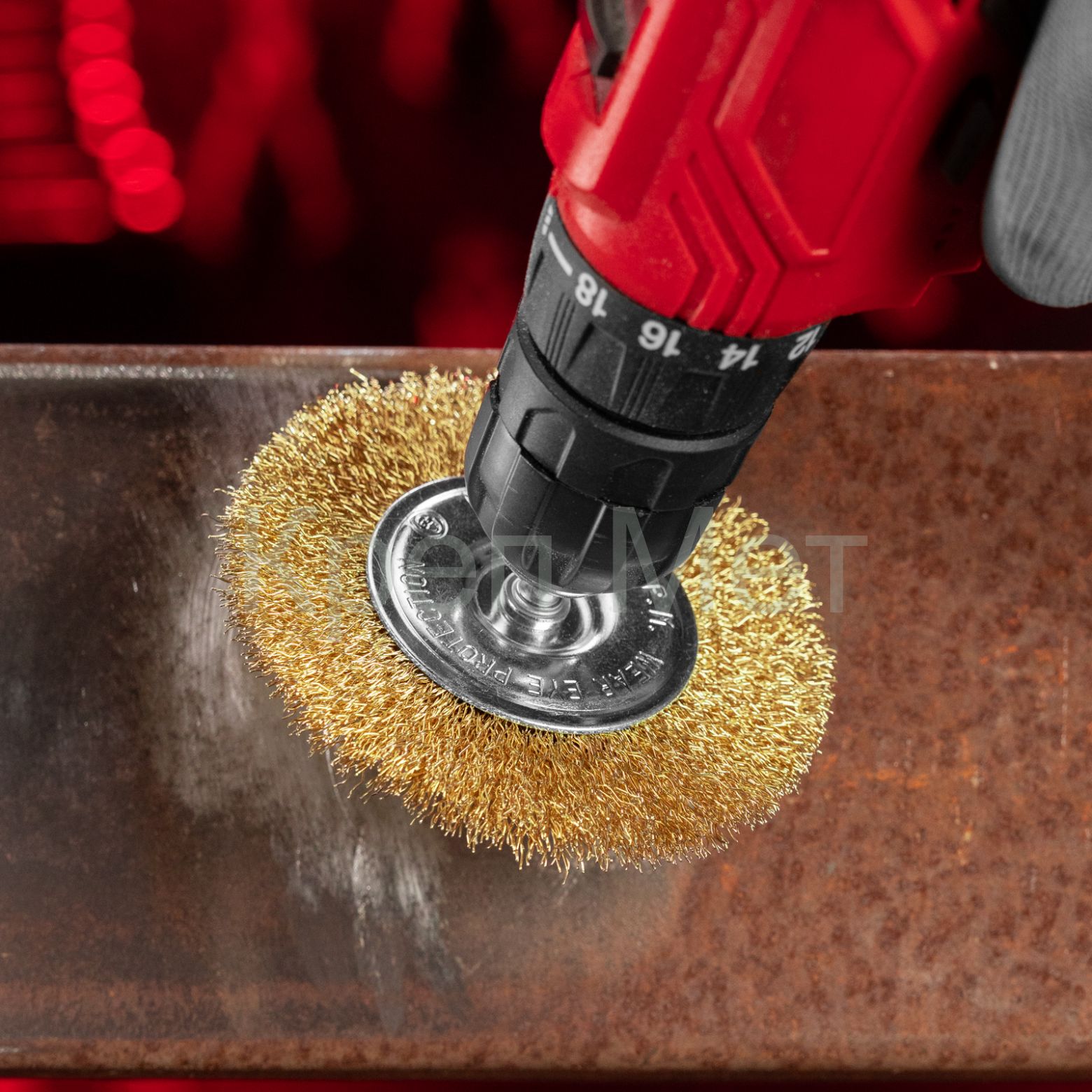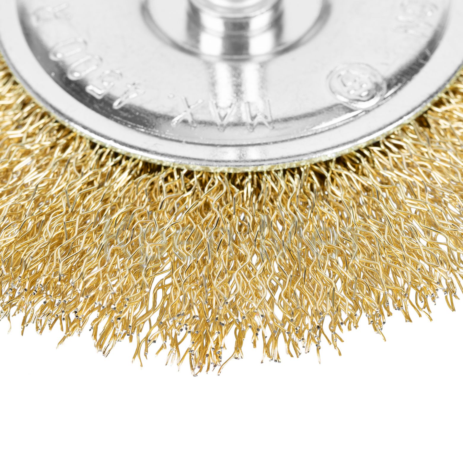 - Щетка для дрели 100 мм, плоская со шпилькой, латунированная витая проволока Matrix