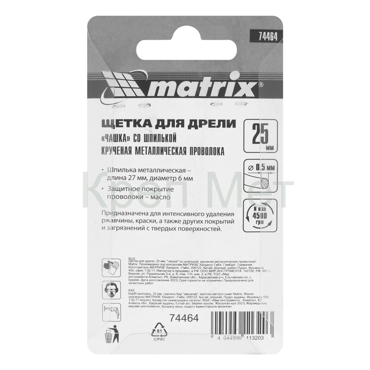Щетка для дрели, 25 мм, "чашка" со шпилькой, крученая металлическая проволока Matrix
