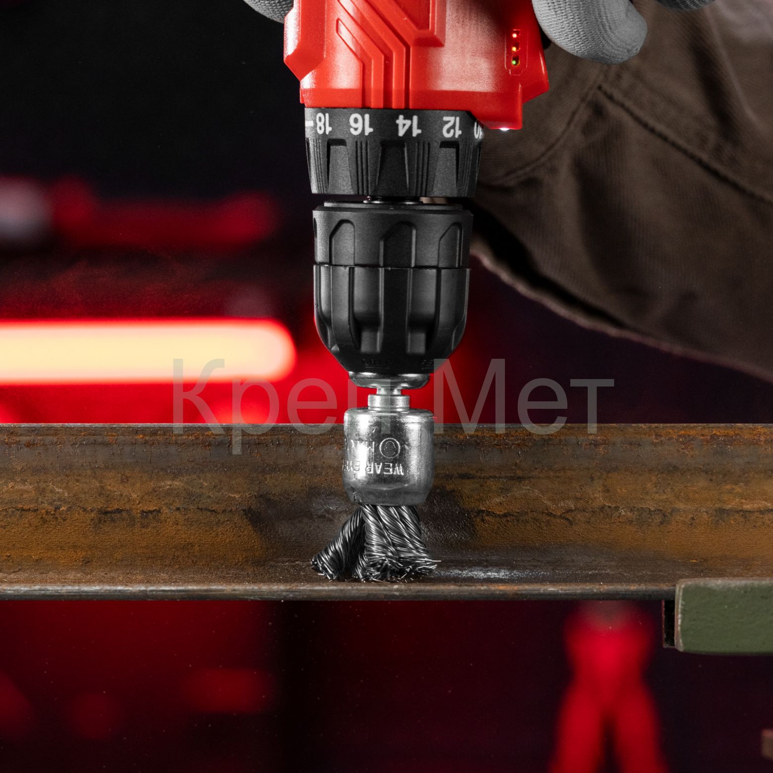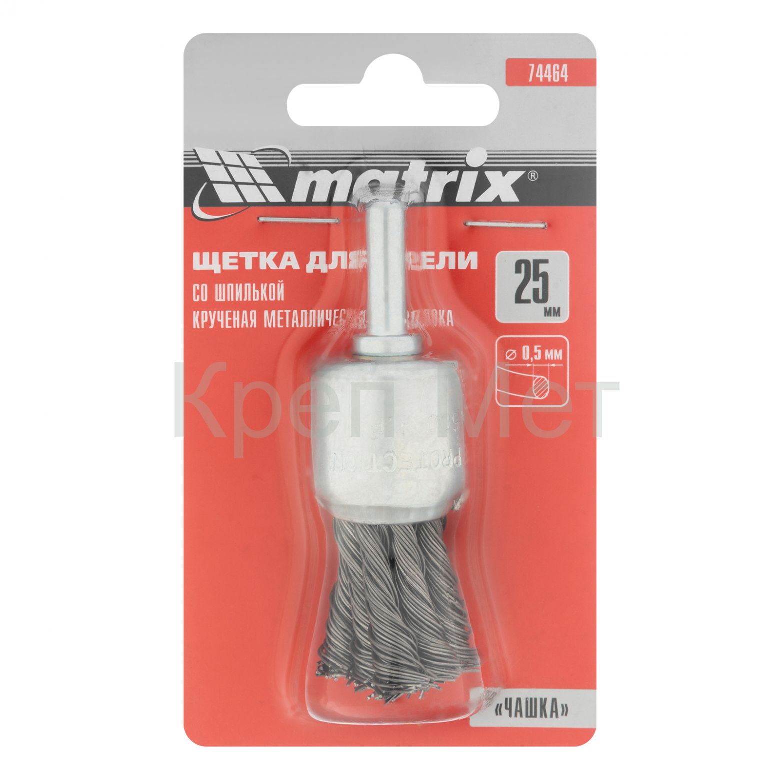 - Щетка для дрели, 25 мм, "чашка" со шпилькой, крученая металлическая проволока Matrix