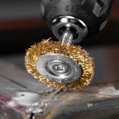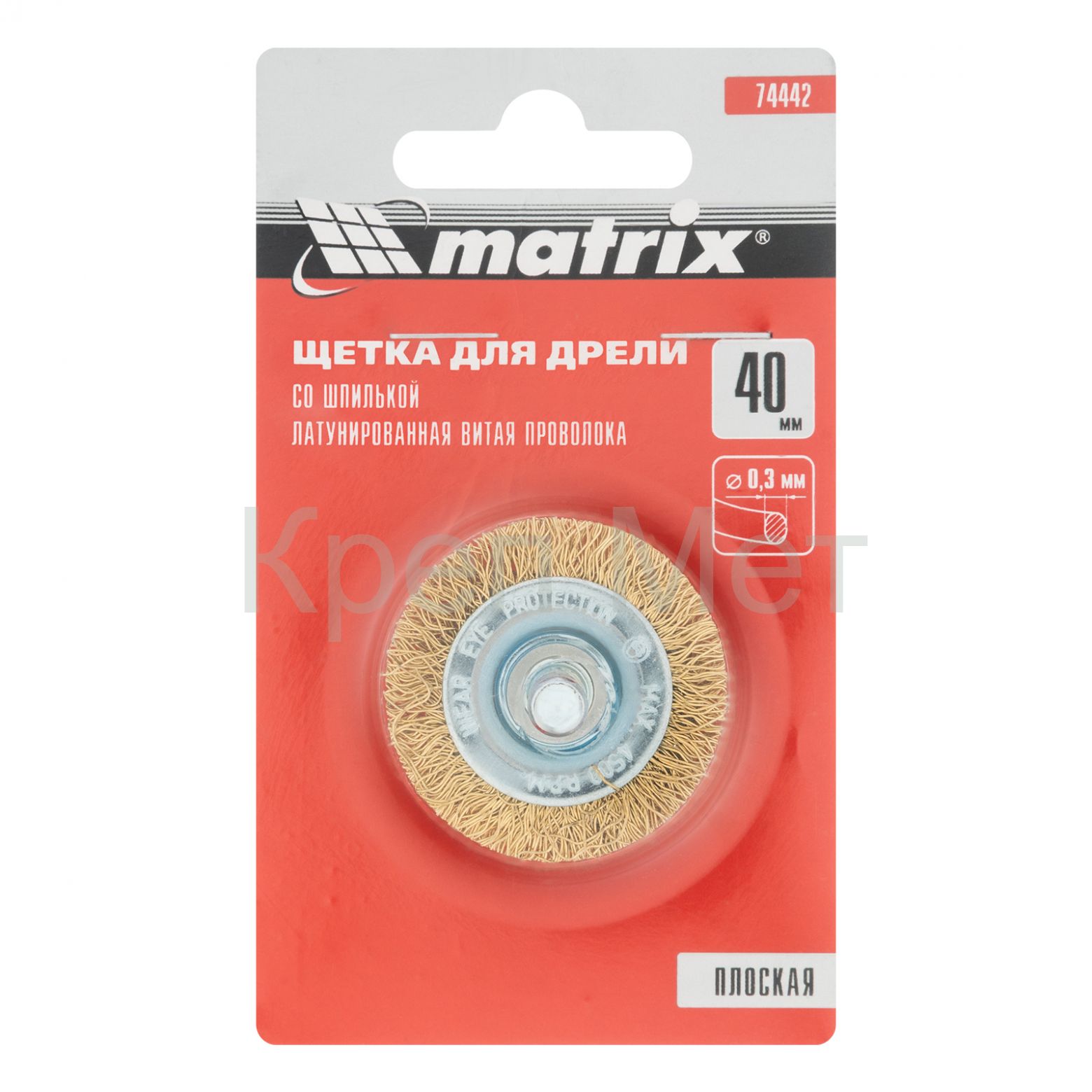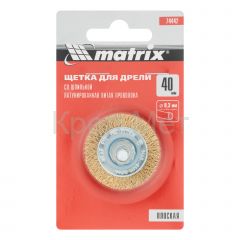 - Щетка для дрели, 40 мм, плоская со шпилькой, латунированная витая проволока Matrix