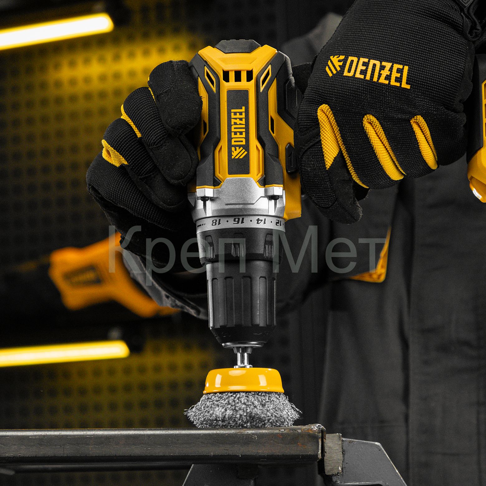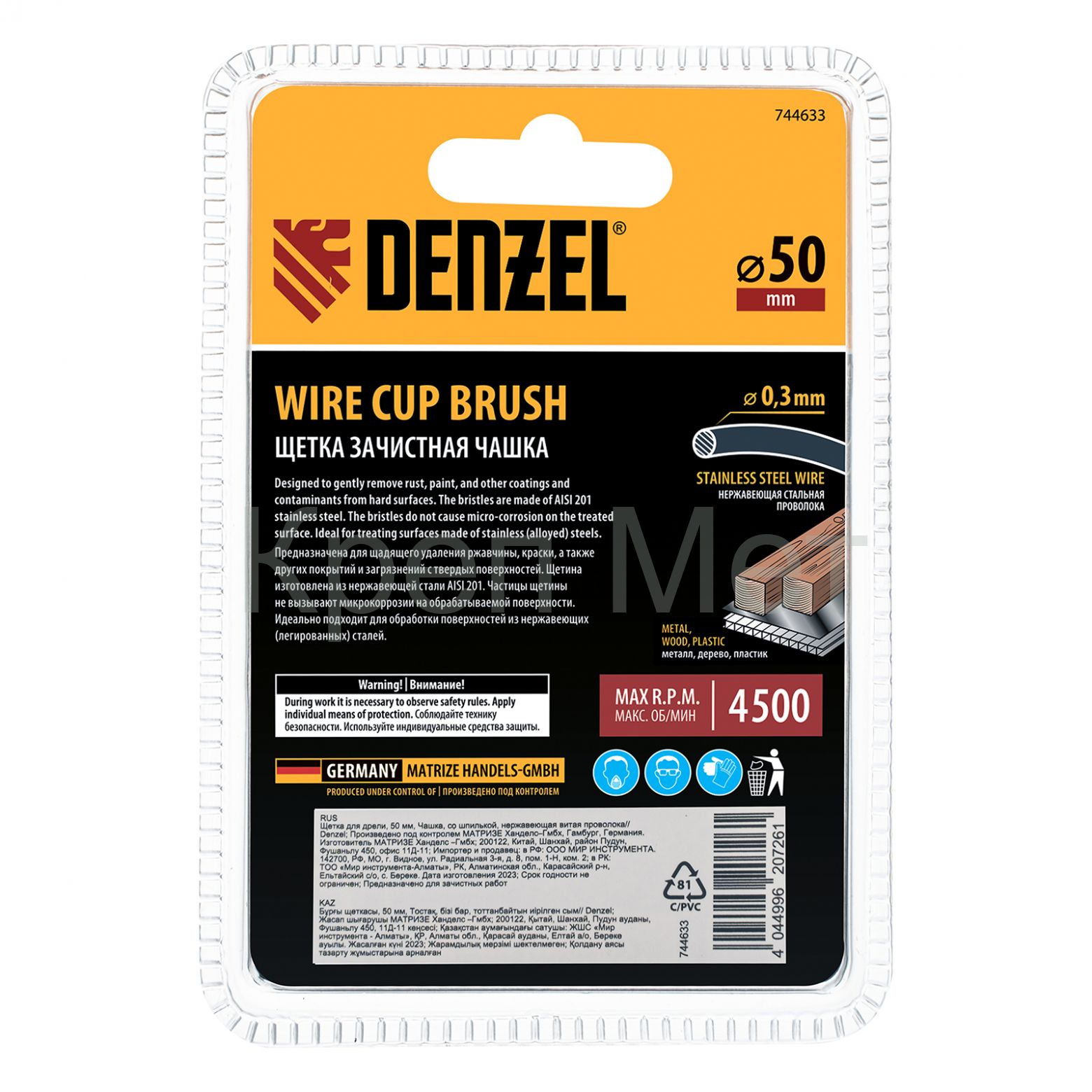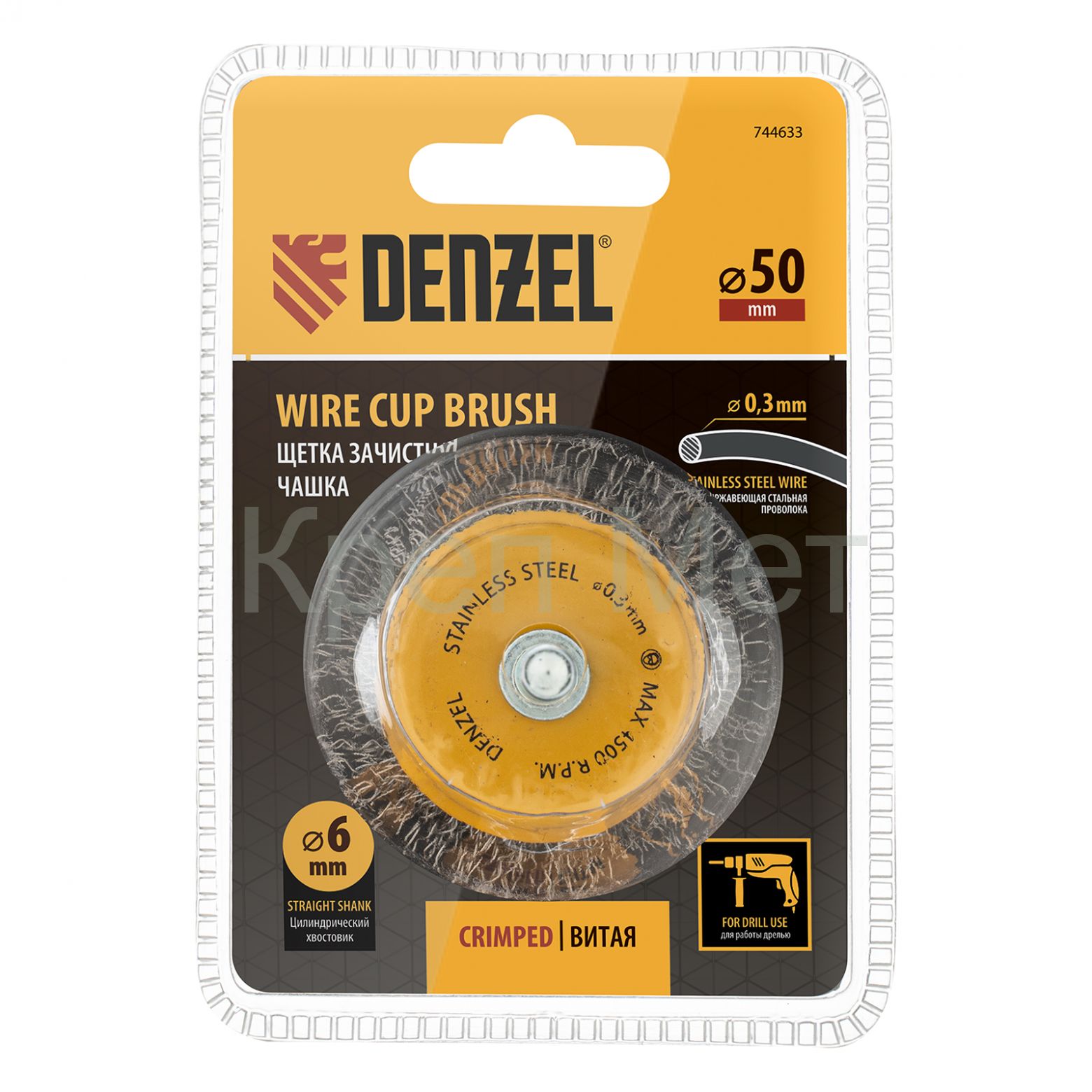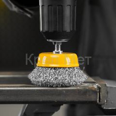 - Щетка для дрели, 50 мм, Чашка, со шпилькой, нержавеющая витая проволока Denzel