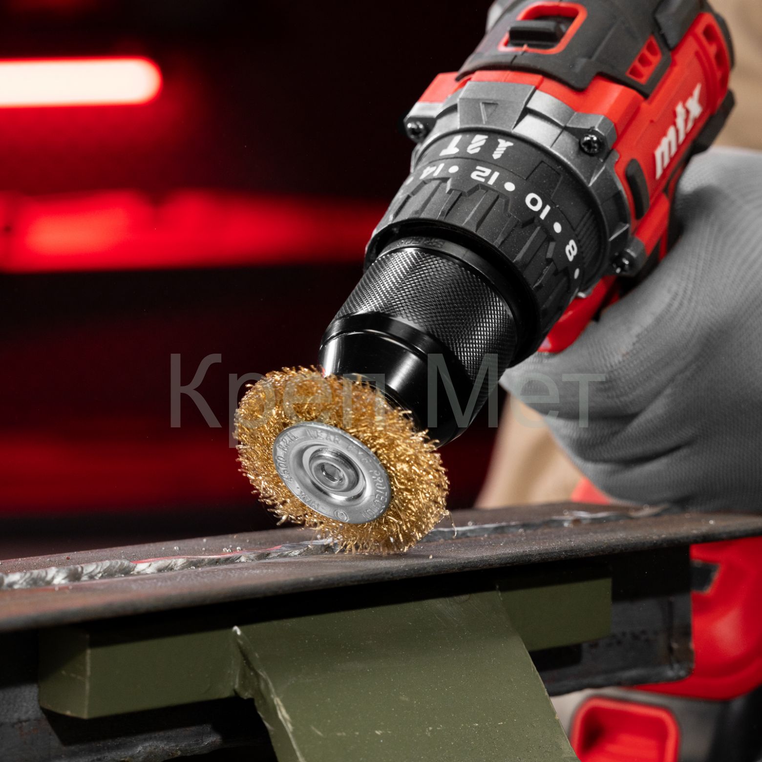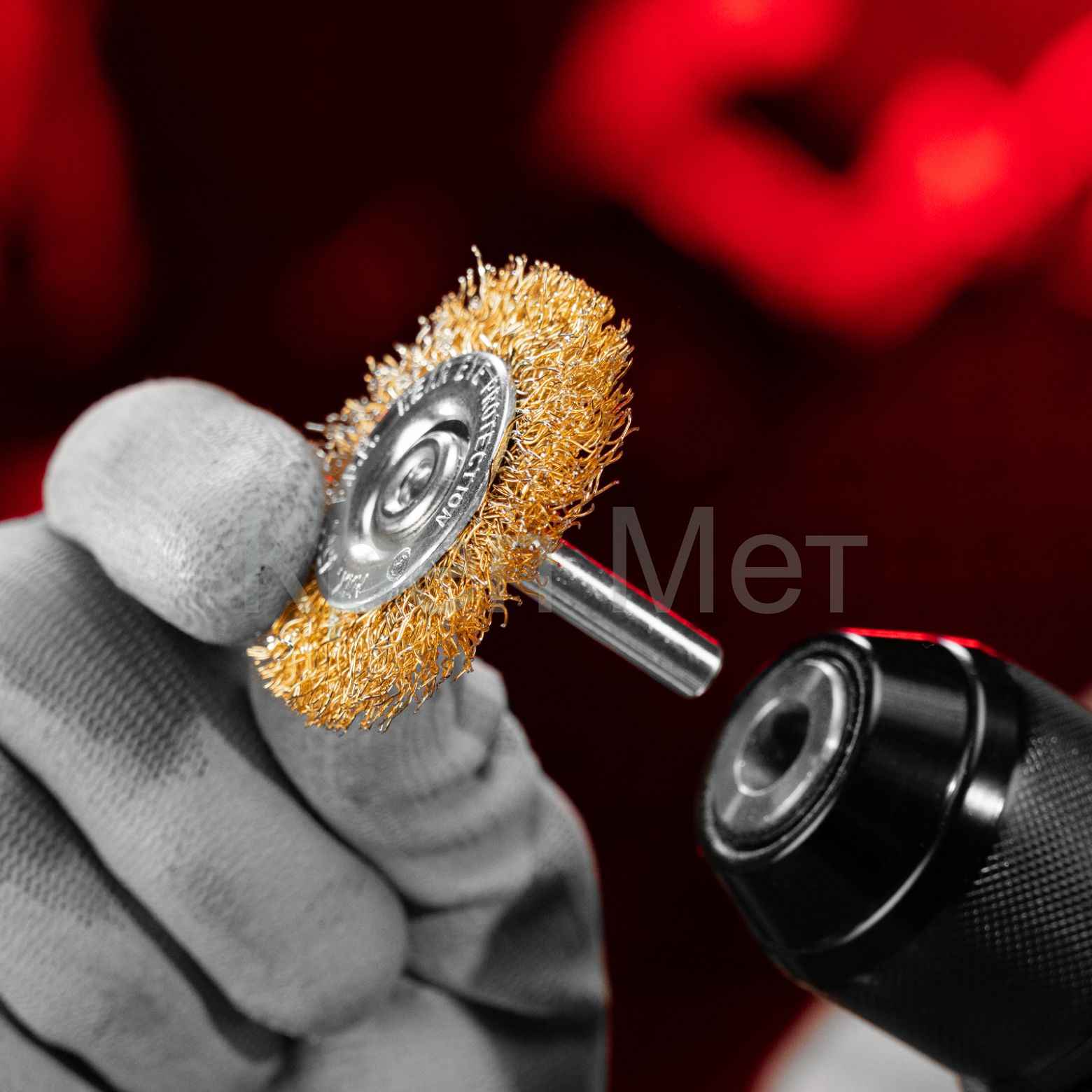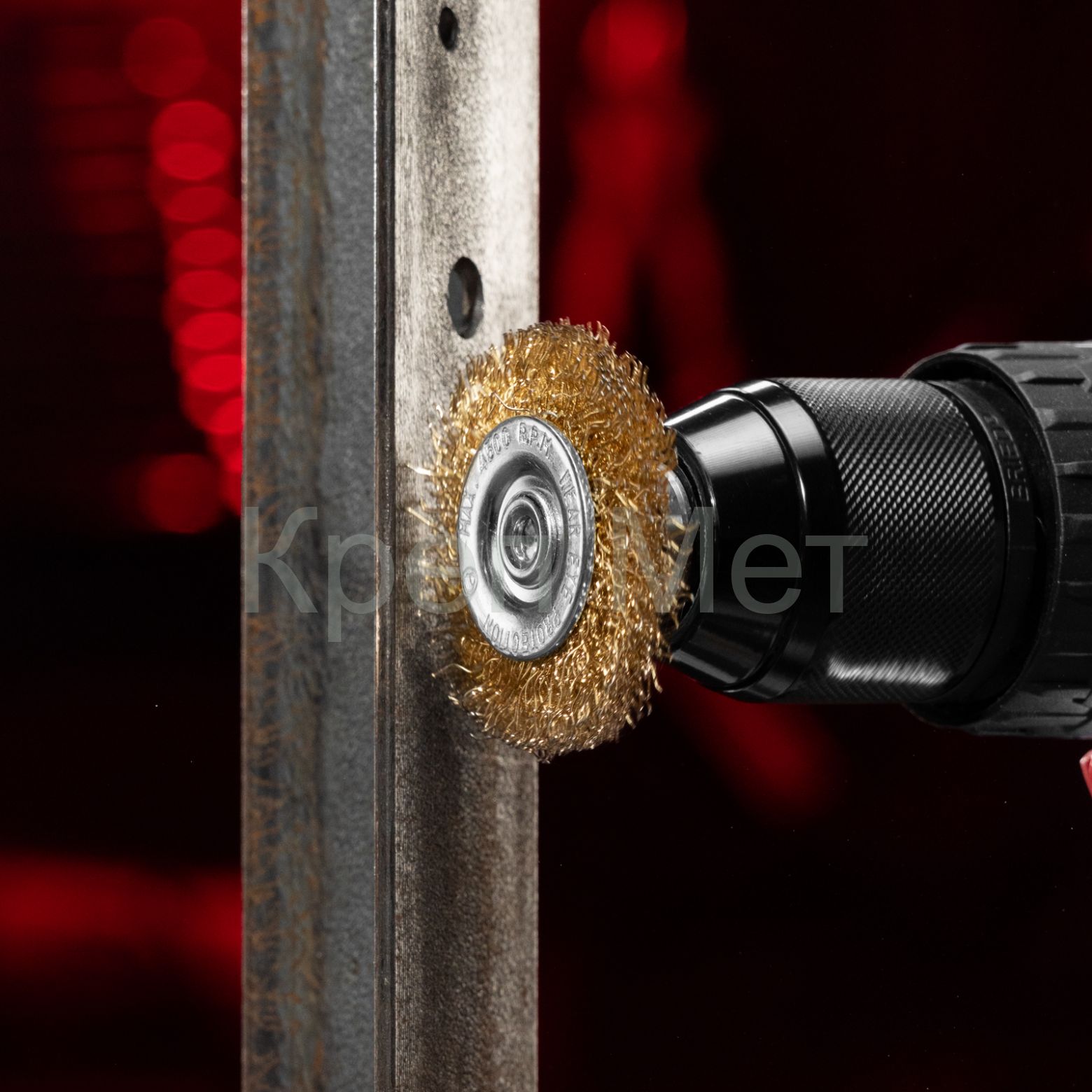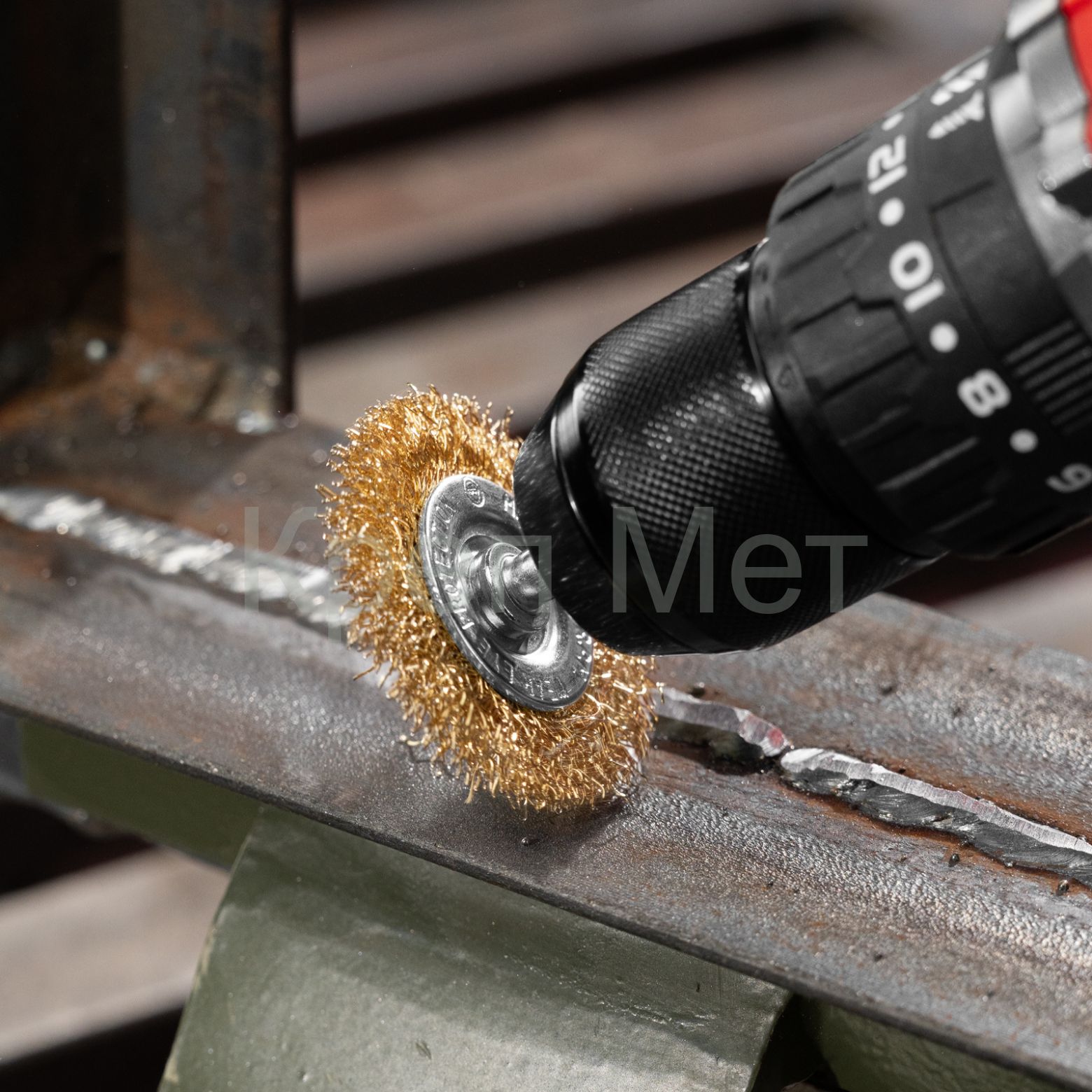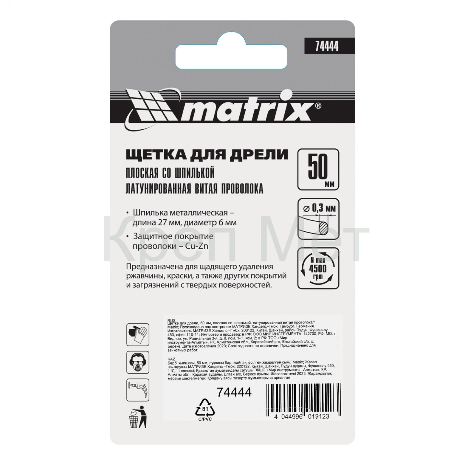 - Щетка для дрели, 50 мм, плоская со шпилькой, латунированная витая проволока Matrix