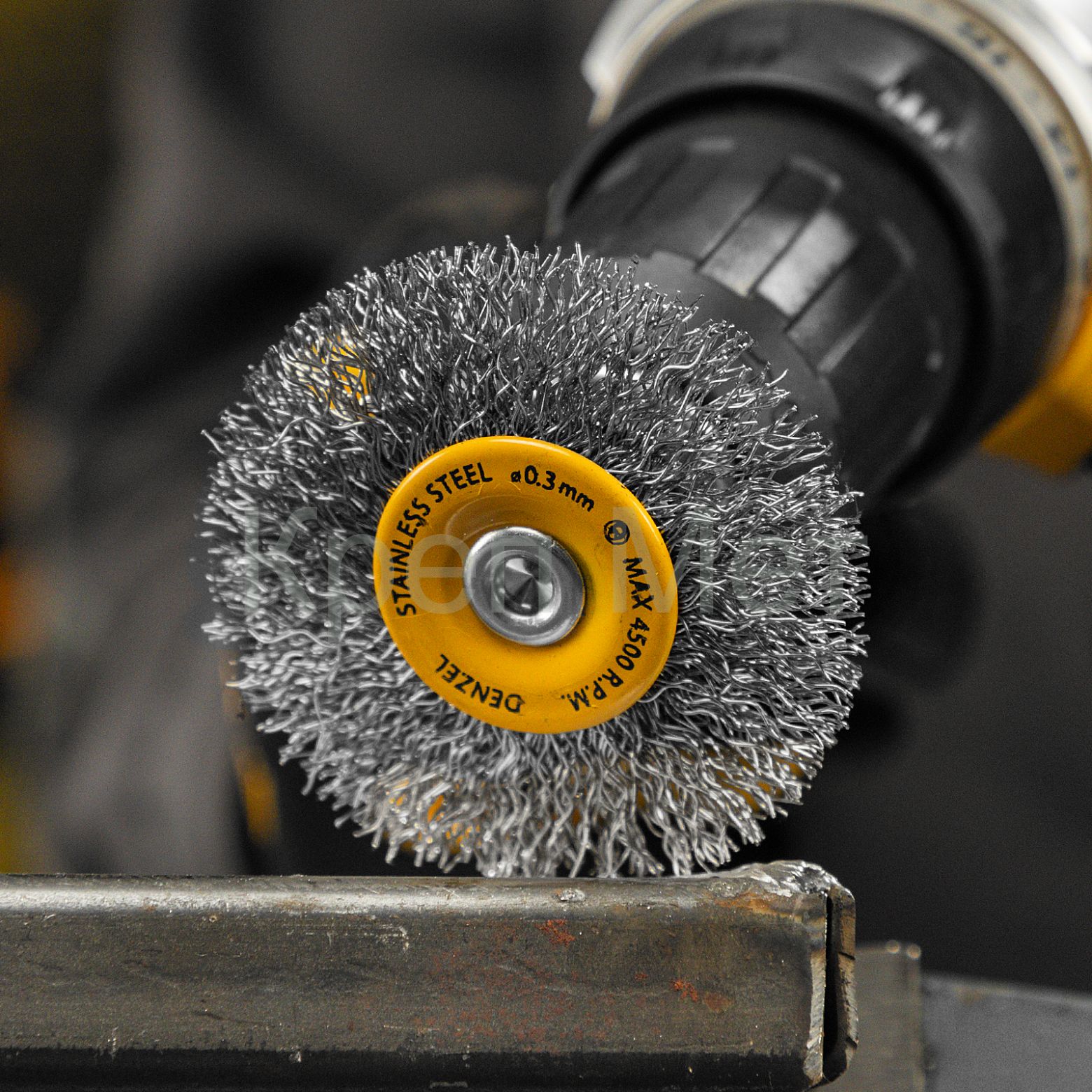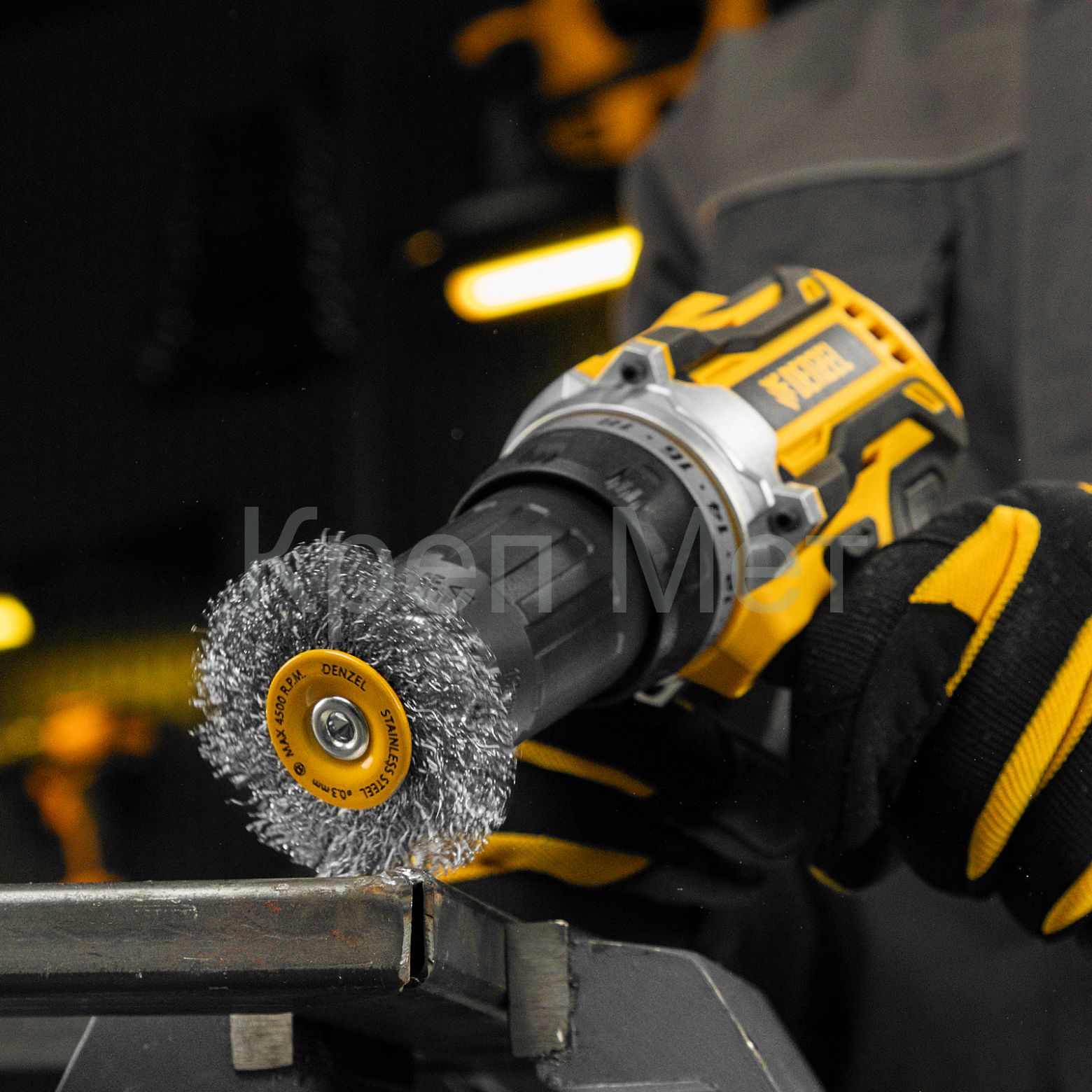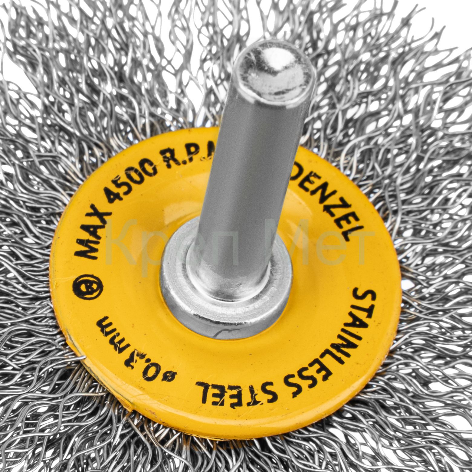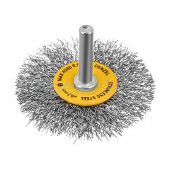 - Щетка для дрели, 60 мм, Плоская, со шпилькой, нержавеющая витая проволока Denzel