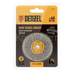 Щетка для дрели, 60 мм, Плоская, со шпилькой, нержавеющая витая проволока Denzel