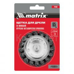 - Щетка для дрели, 65 мм, "чашка" со шпилькой, крученая металлическая проволока Matrix