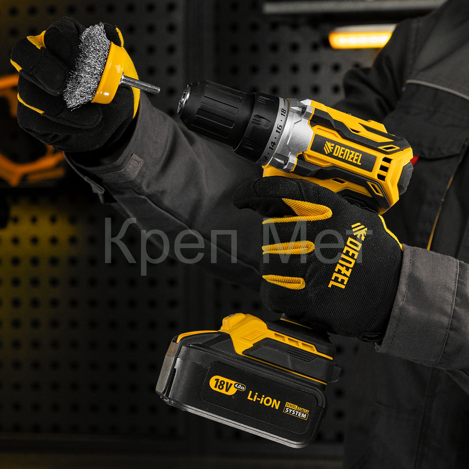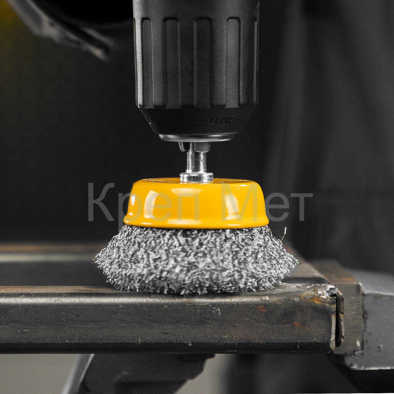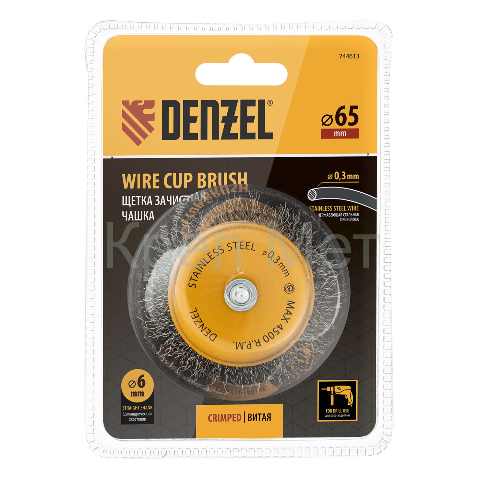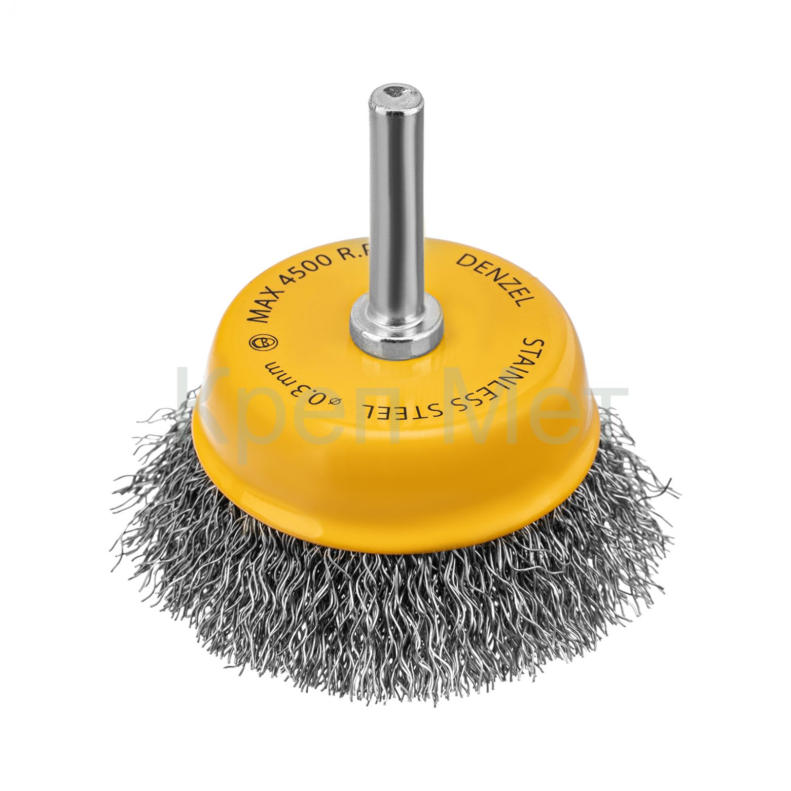 - Щетка для дрели, 65 мм, Чашка, со шпилькой , нержавеющая витая проволока Denzel