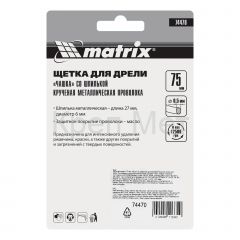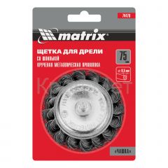 - Щетка для дрели, 75 мм, "чашка" со шпилькой, крученая металлическая проволока Matrix