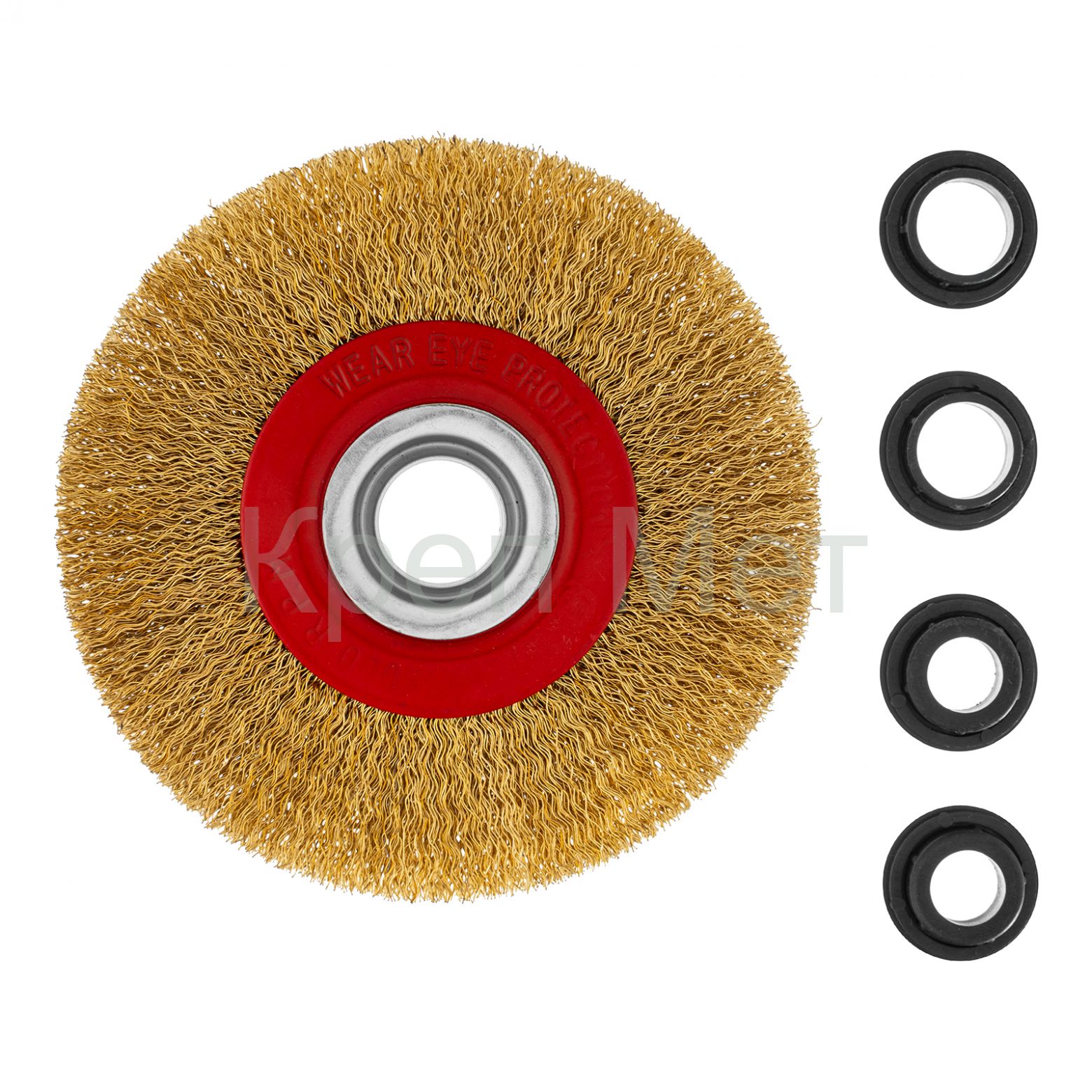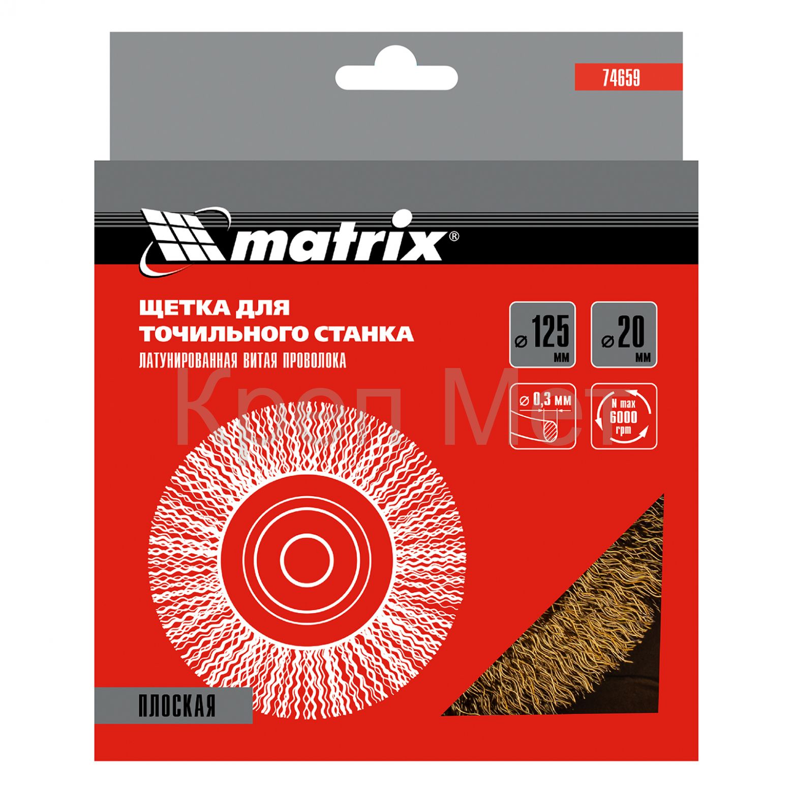 - Щетка для точила, 125 мм, посадка 20 мм, плоская, латунированная витая проволока Matrix