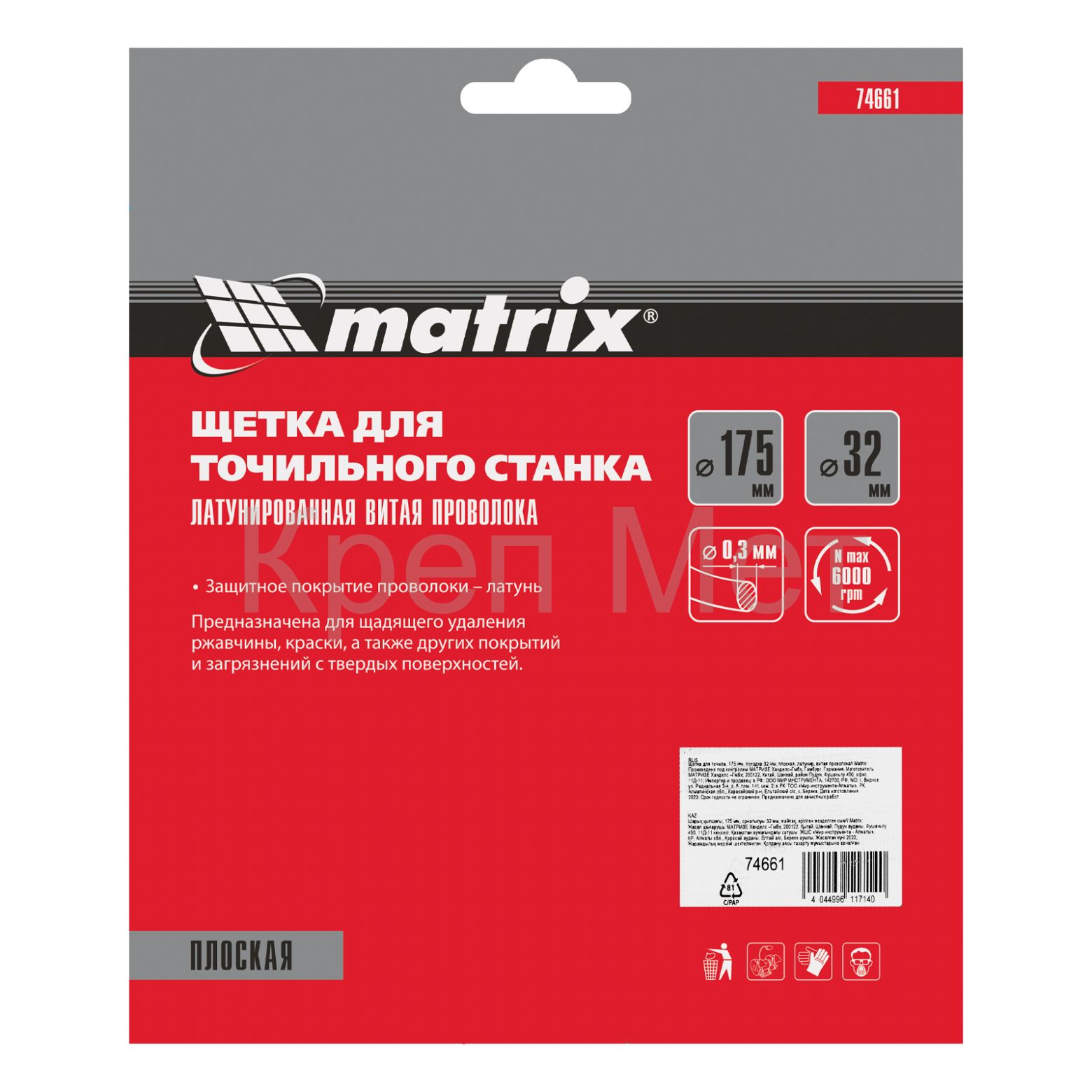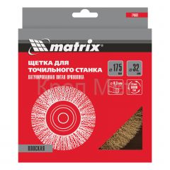 - Щетка для точила, 175 мм, посадка 32 мм, плоская, латунированная витая проволока Matrix