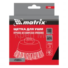 - Щетка для УШМ, 100 мм, М14, "чашка", крученая проволока 0.5 мм Matrix