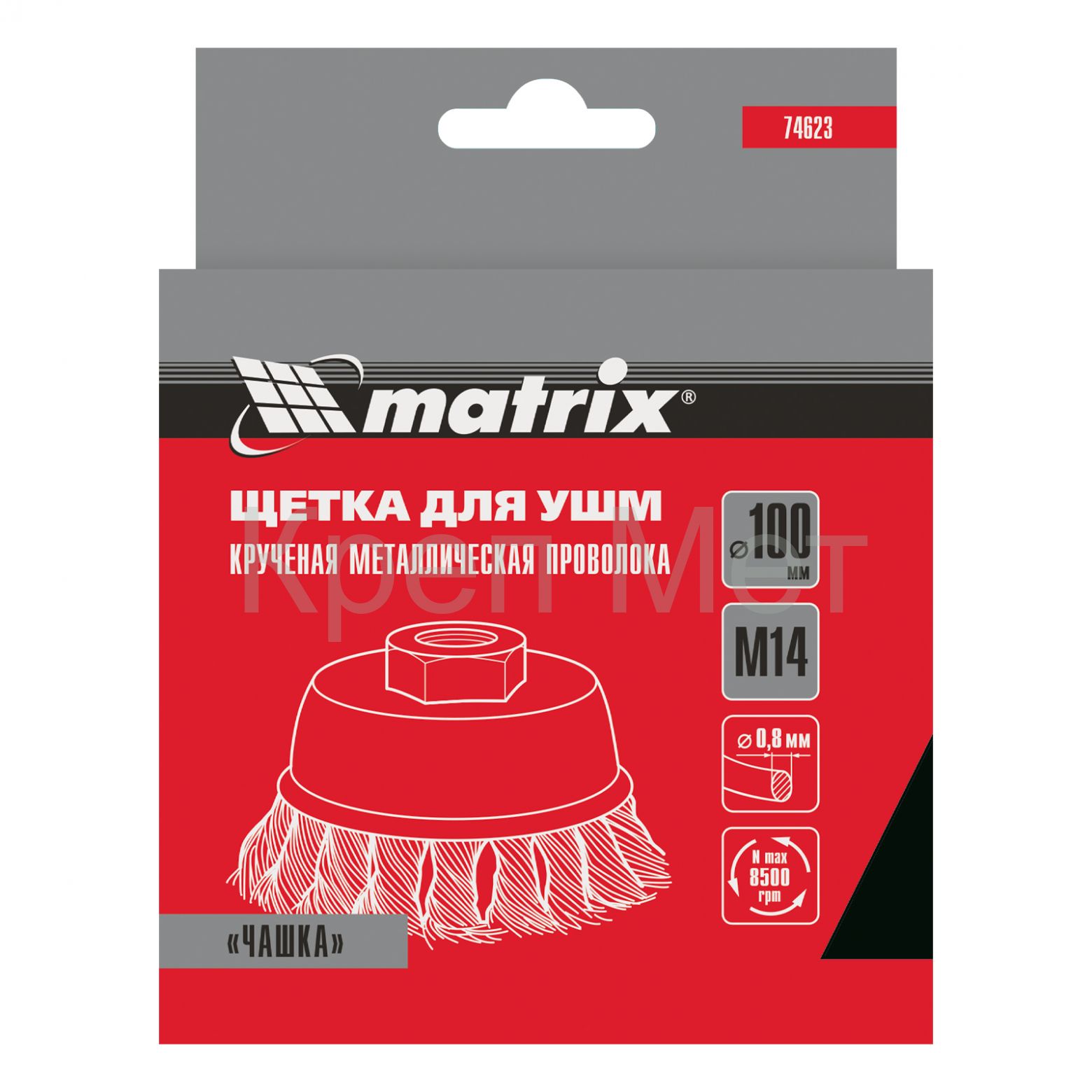 - Щетка для УШМ, 100 мм, М14, "чашка", крученая проволока 0.8 мм Matrix