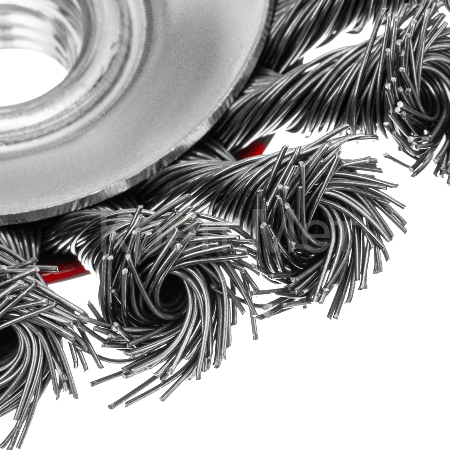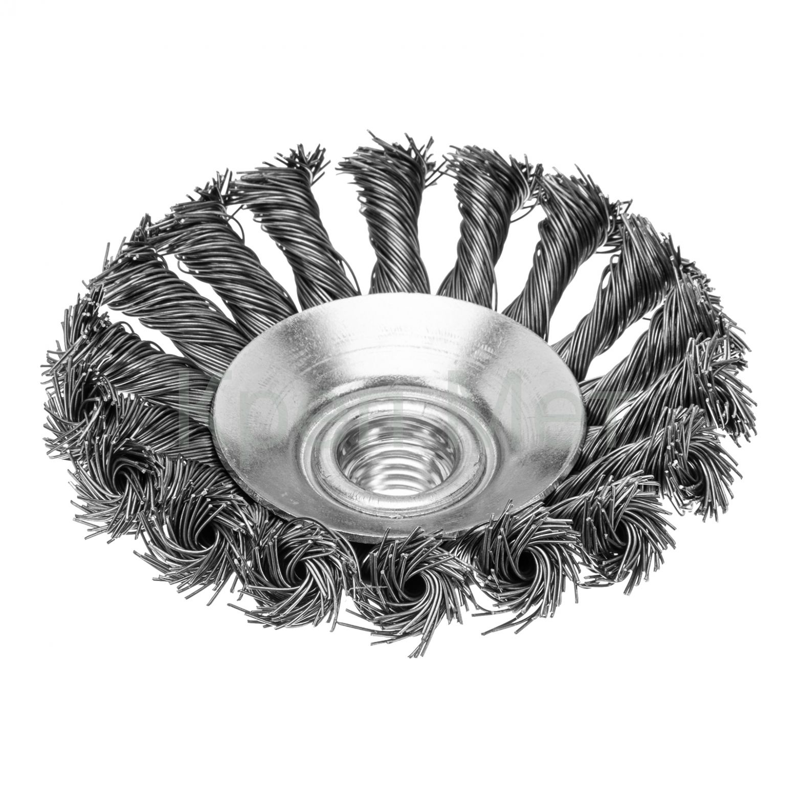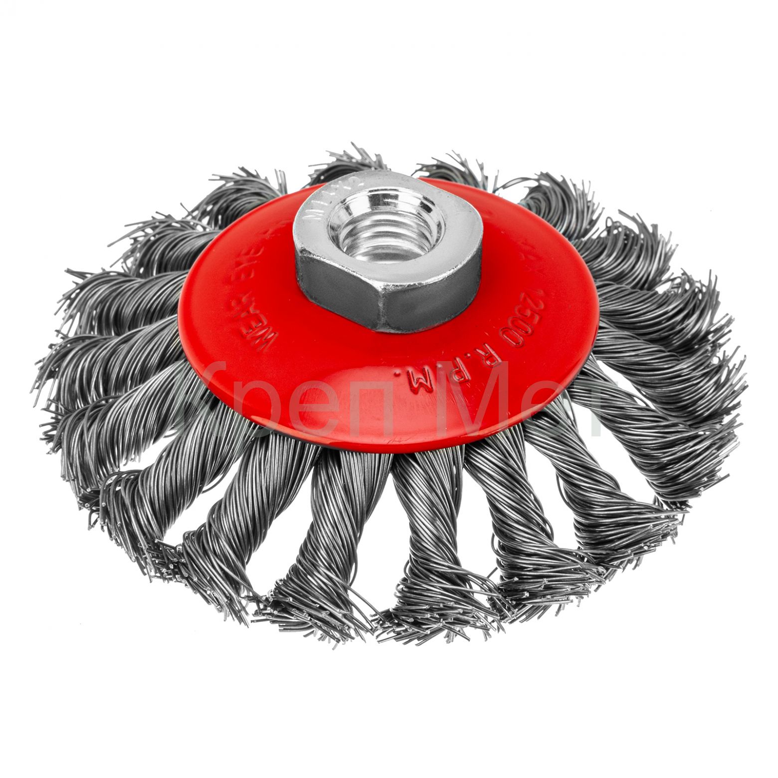 - Щетка для УШМ, 100 мм, М14, "тарелка", крученая проволока 0.5 мм Matrix